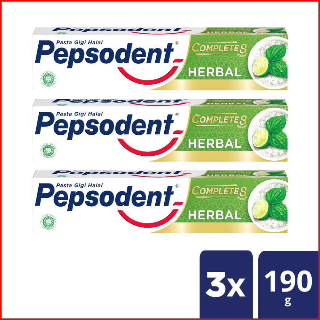 Pepsodent Complete 8 Herbal Nature Essentials Mulut Adem Nafas Segar 190g X 3 Pcs