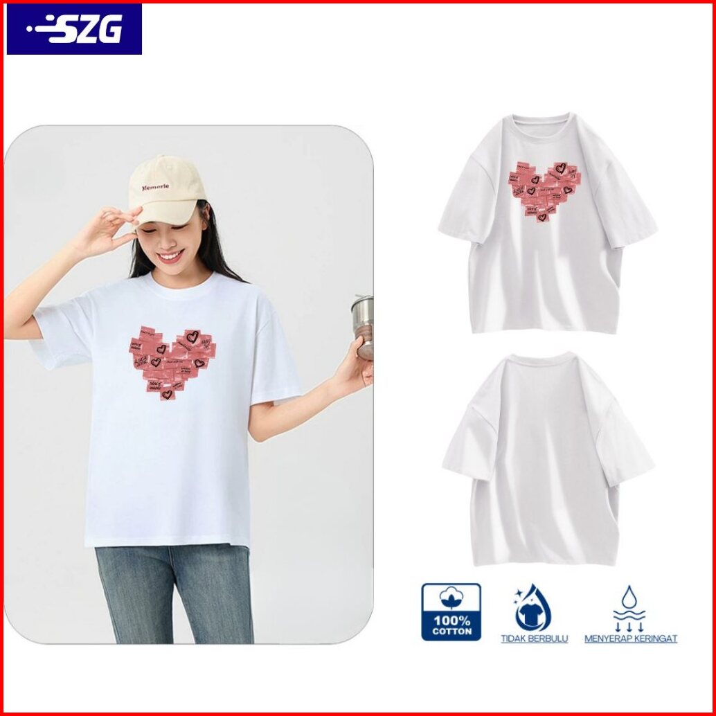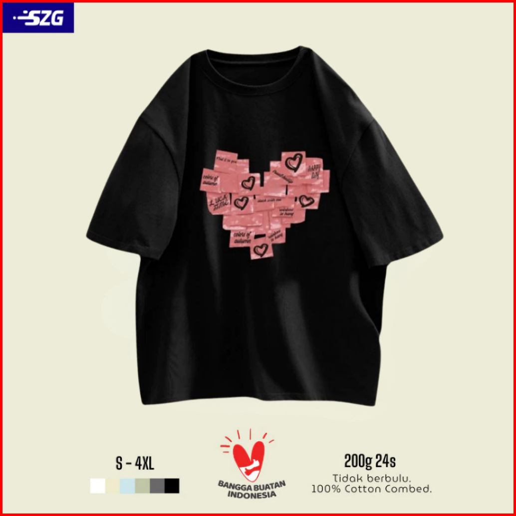 Szg T-shirt Pria Premium 24s 200g Pink Heart Flash Sale Kaos Unisex Short Sleeve Promo Baju Jumbo