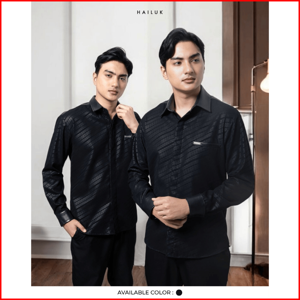 Hailuk Dilan Kemeja Batik Hitam Pria Slimfit Lengan Panjang