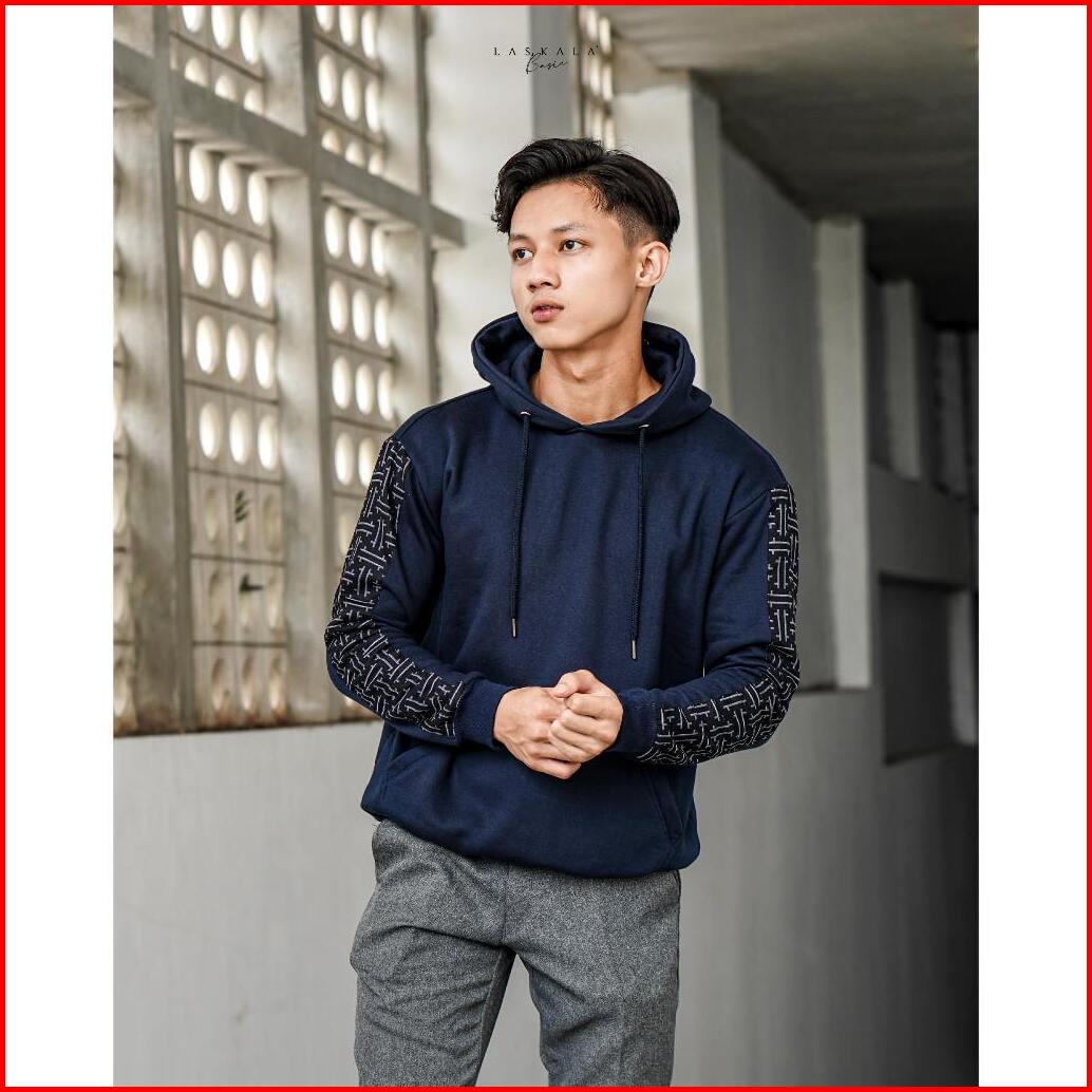 Hailuk Berlin Navy Hoodie Pria Premium Cotton Fleece