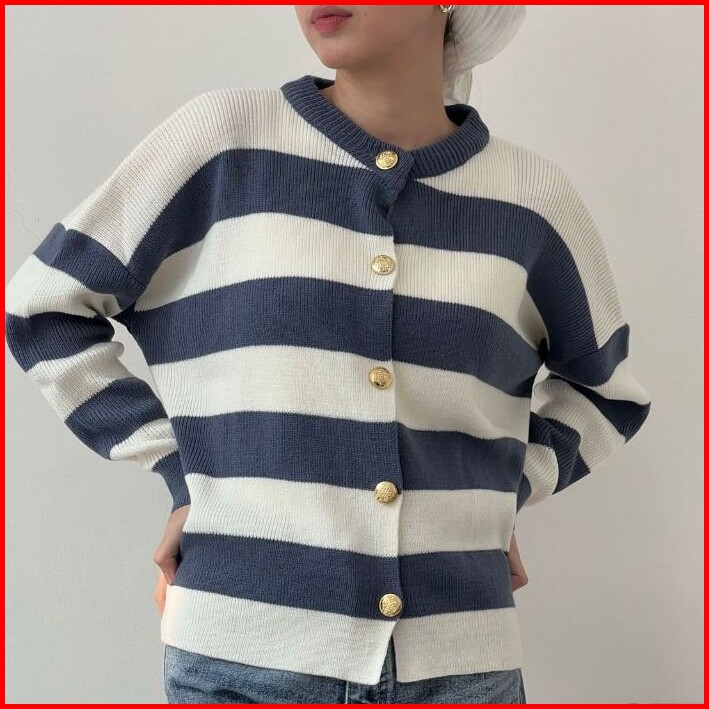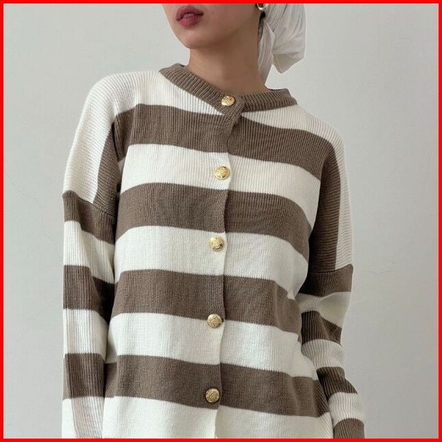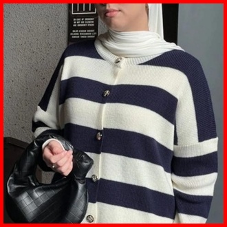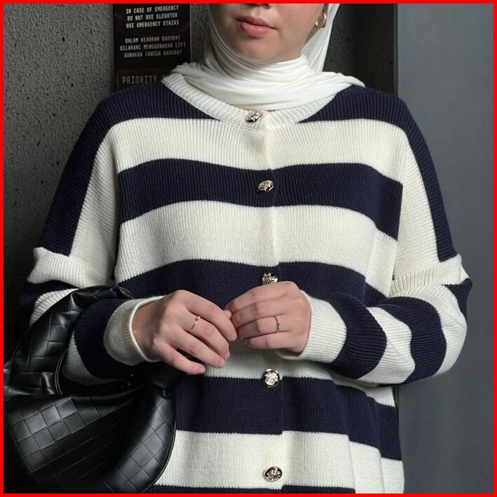 Mai.market Alice Stripes Knit Cardy Premium - Atasan Wanita Bahan Rajut Premium Tebal