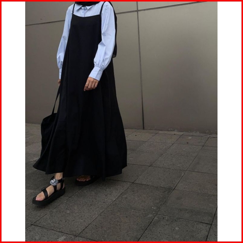 Longdress Wanita Square Neck A Line Dress Tali Kecil Casual Trendy Kekinian