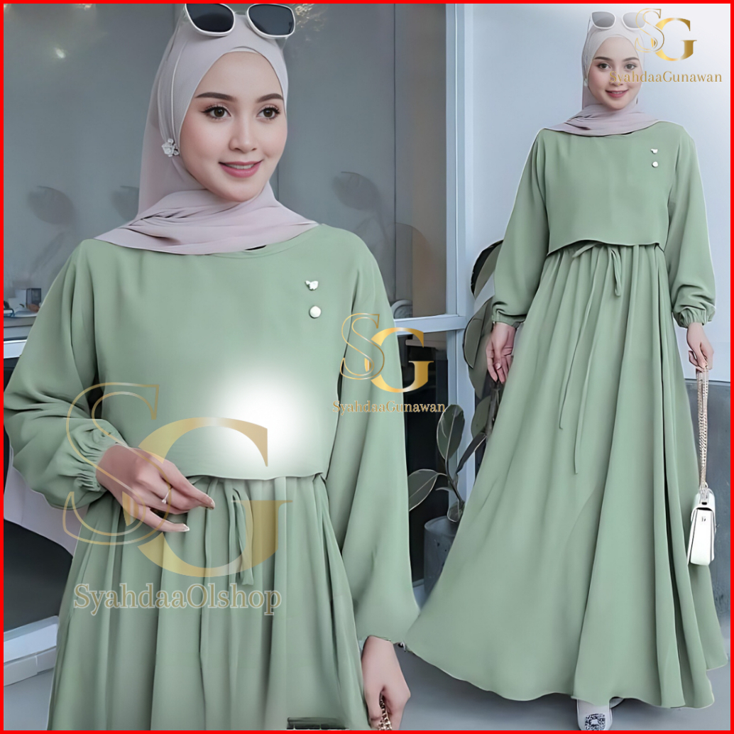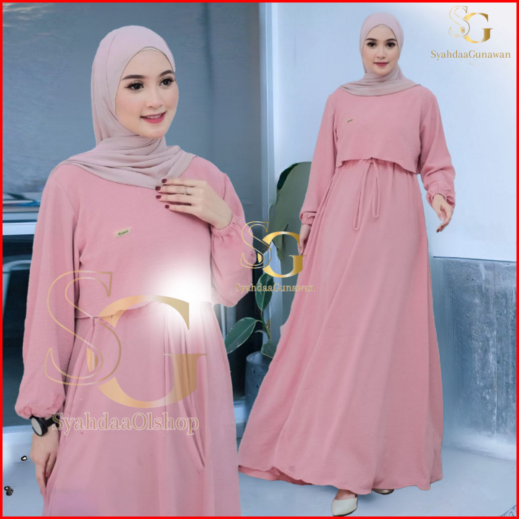Outer Terpisah Bisa Dilepas Atasan Gamis Terbaru Nafisa Dress Maxy Set2in1 Inner Outer Crop Gamis Setelan Wanita Airflow