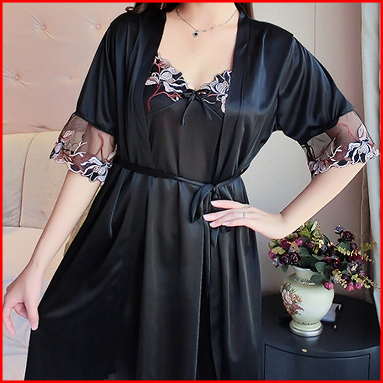 Myreseller Kimono Baju Tidur Wanita Deep Flower Katun Satin Hantaran Nikah Kh99