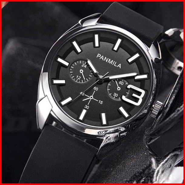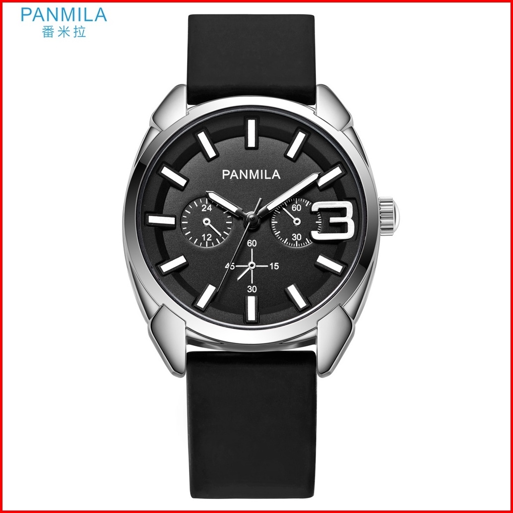 Jam Tangan Wanita Analog Panmila Sport Kasual Unisex Besar P0389l-nz1whh Tali Karet Silicon Hitam