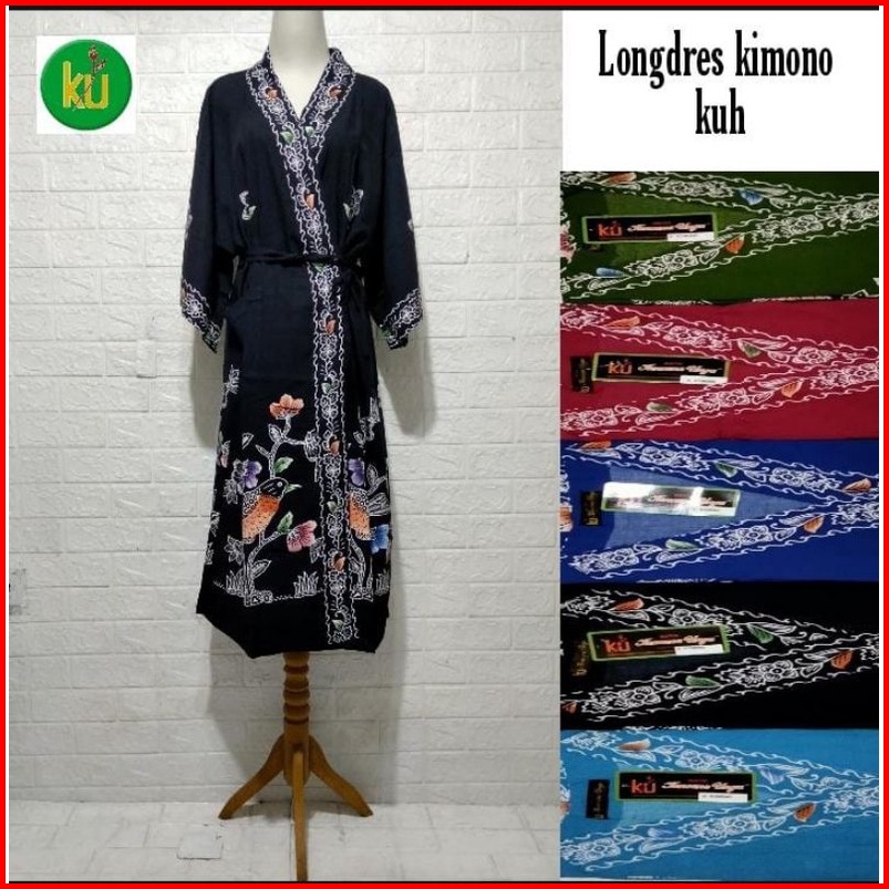 Kencana Ungu Longdres Kimono Bunga-bunga Hitam