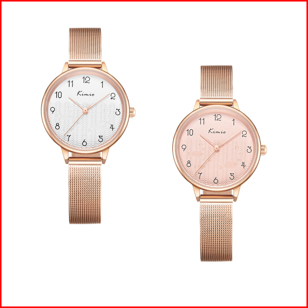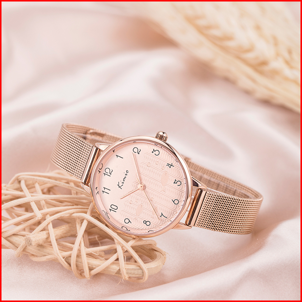 Kimio Jam Tangan Tali Kulit Asli Kasual K6452m-xz1rrl Stainless Steel Rose Layar Peach Pink