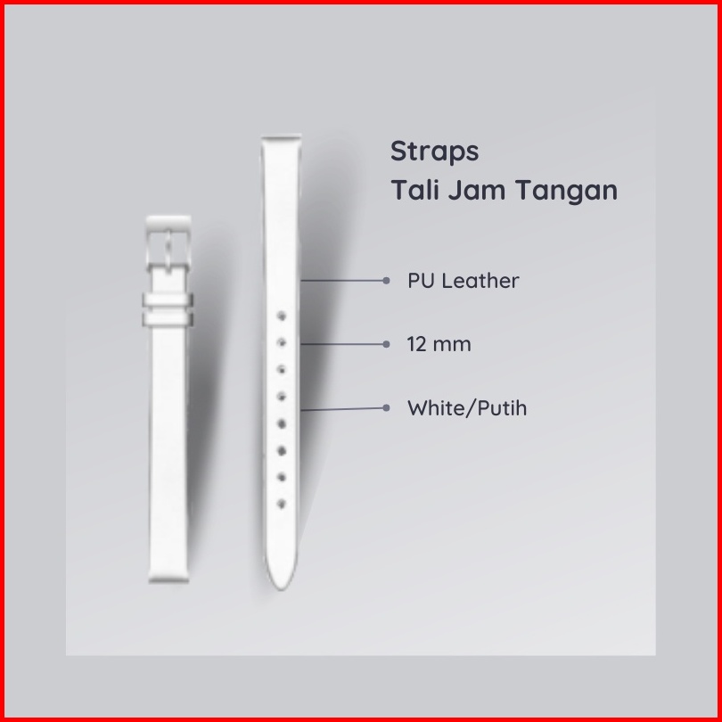 12mm Warna Putih Panmila Tali Strap Jam Tangan Wanita Kasual Bahan Pu Leather