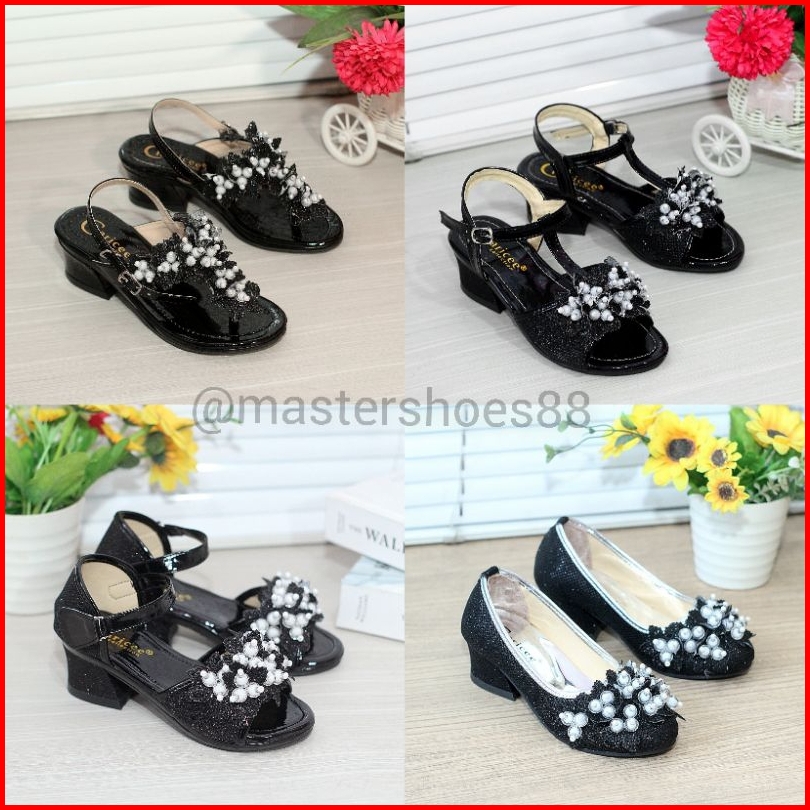 Master Ht02 - Black Collection Bestseller Sandal Selop Pesta Anak Perempuan Hak 3cm Terlaris