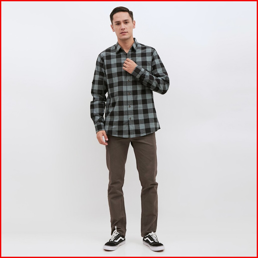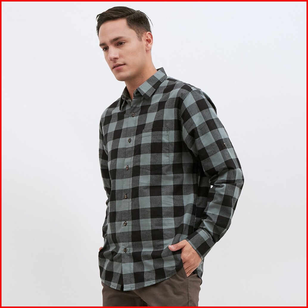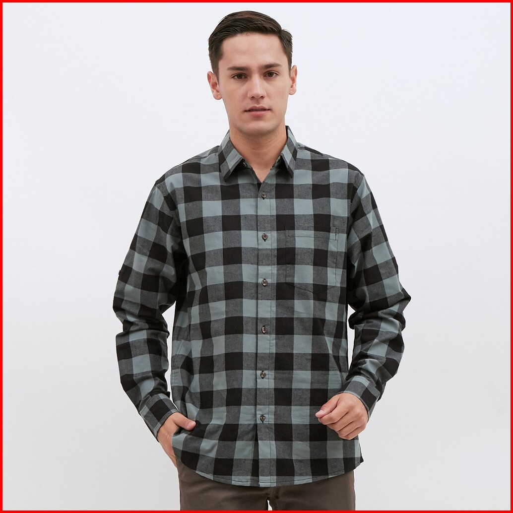 M231 Kemeja Pria Flannel Panjang Abu 1899a