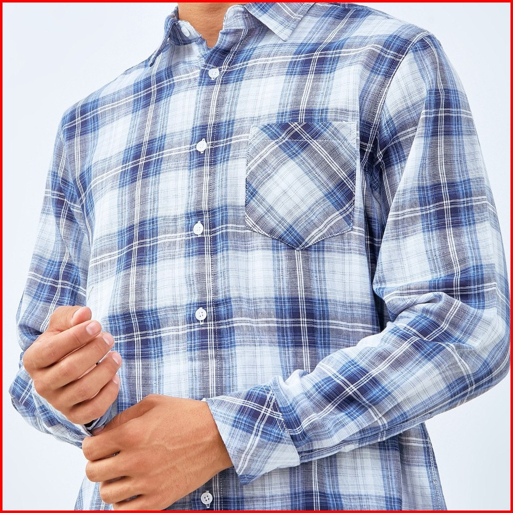 M231 Kemeja Pria Yarn Dyed Double Face Kotak Panjang Biru 3066