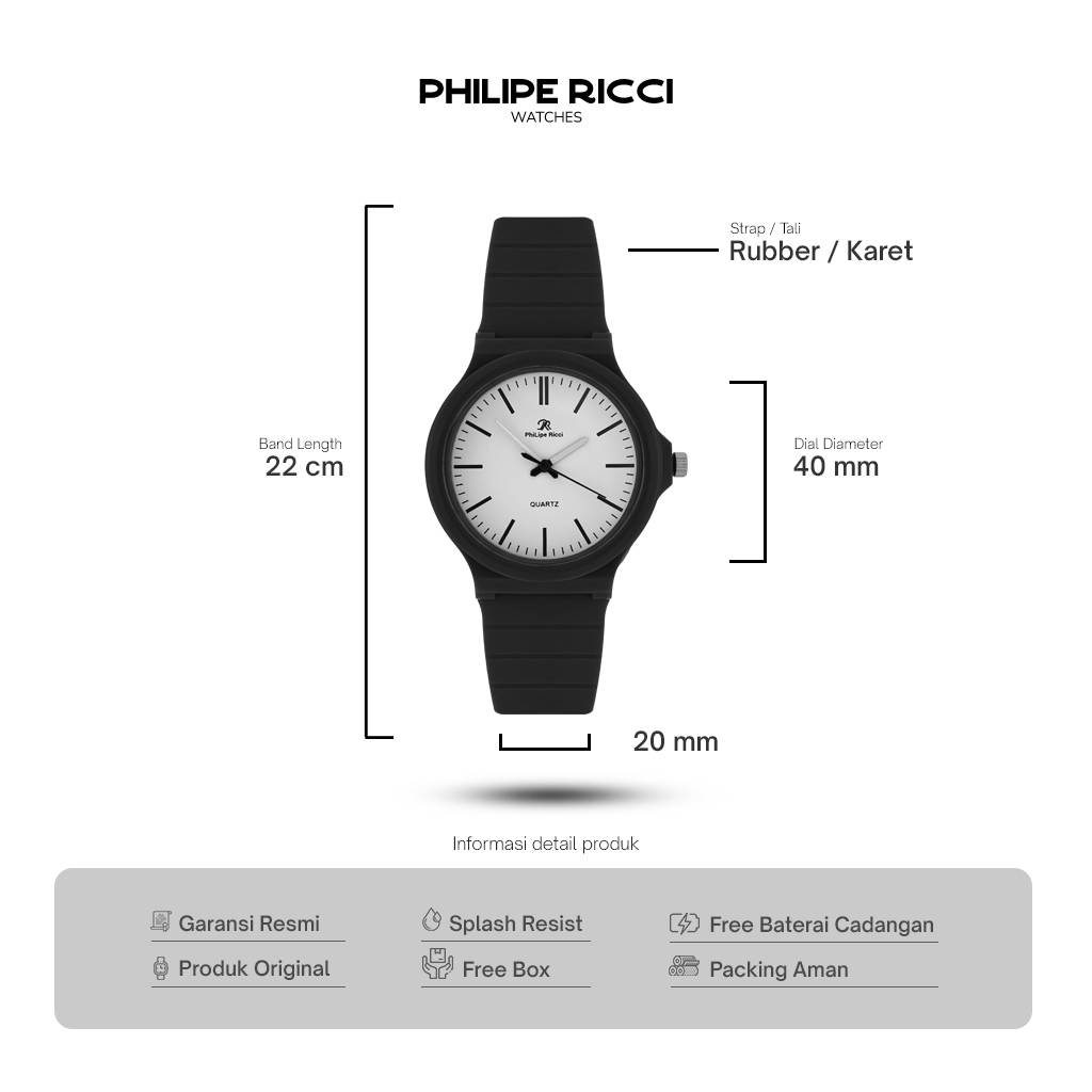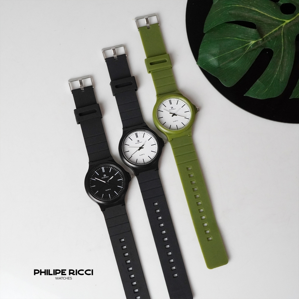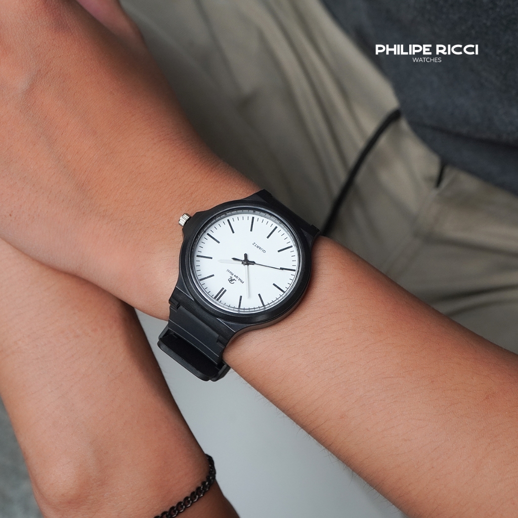 PHILIPE RICCI JAM TANGAN PRIA KARET HITAM TIPIS SIMPLE KEREN ANALOG ORI 88A MEN WATCHES FREE BOX
