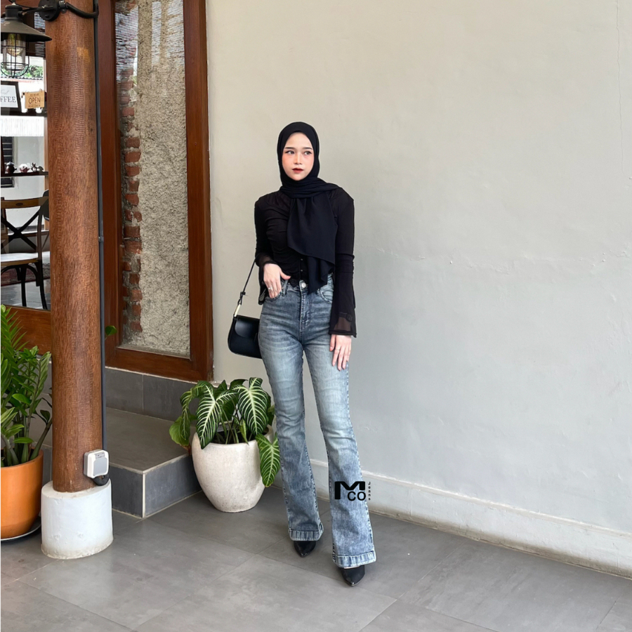 MCOJEANS - Celana Ultra Highwaist Cutbray Snow Abu Polos Panjang Basic Jeans Wanita - Celana Denim Cewek