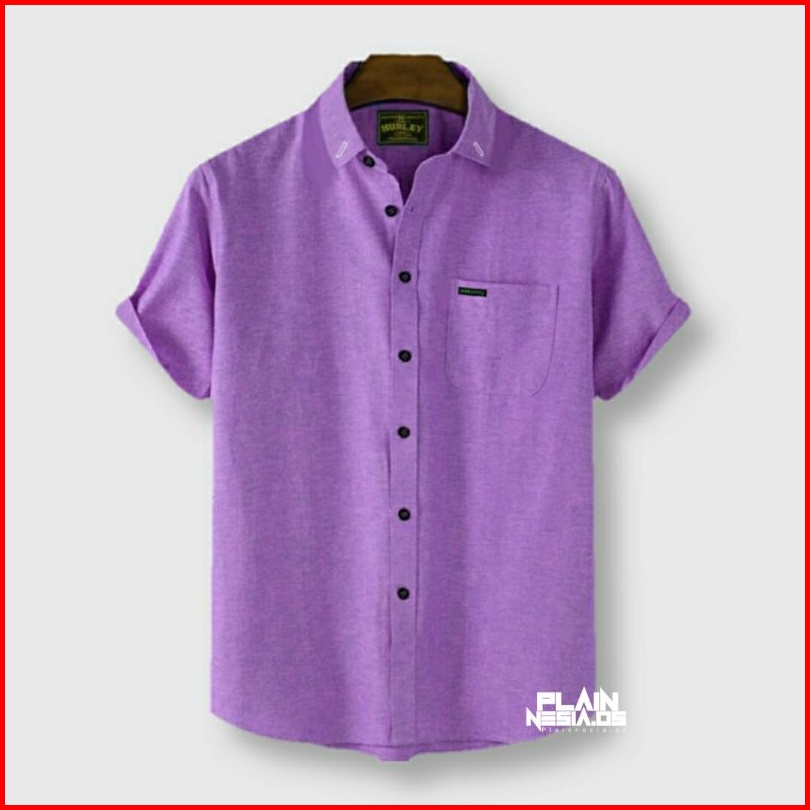 Kemeja Pendek Pria Basic Slimfit Warna Ungu Lilac Size Normal M L Xl Xxl Xxxl