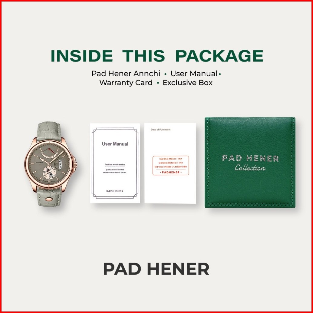 Pad Hener Annchi Jam Tangan Wanita Pria Anti Air Analog Strap Kulit Garansi Original Free Box