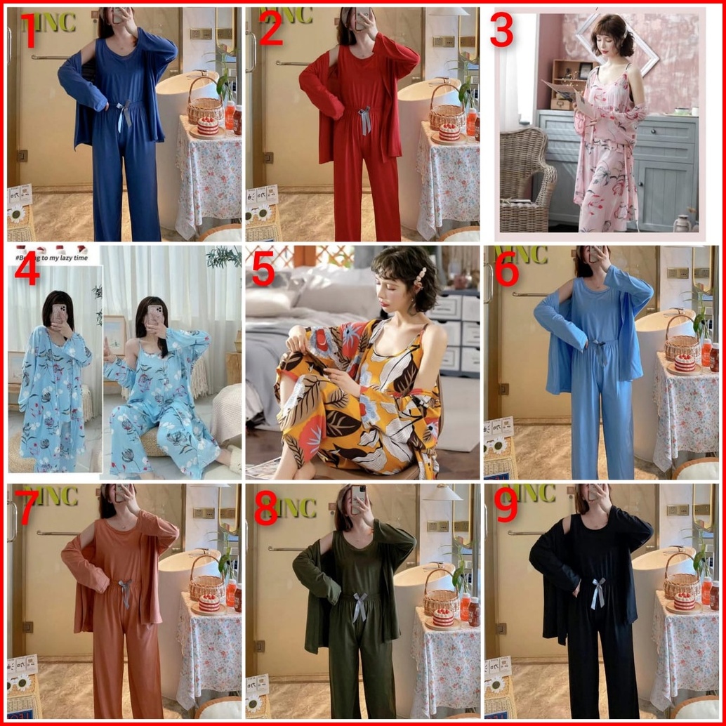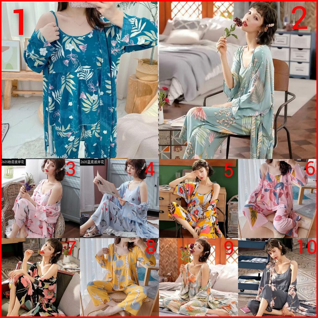 Baju Tidur Piyama Model Kimono 3in1 Bahan Spandek Import Lembut Adem Berkualitas All Size
