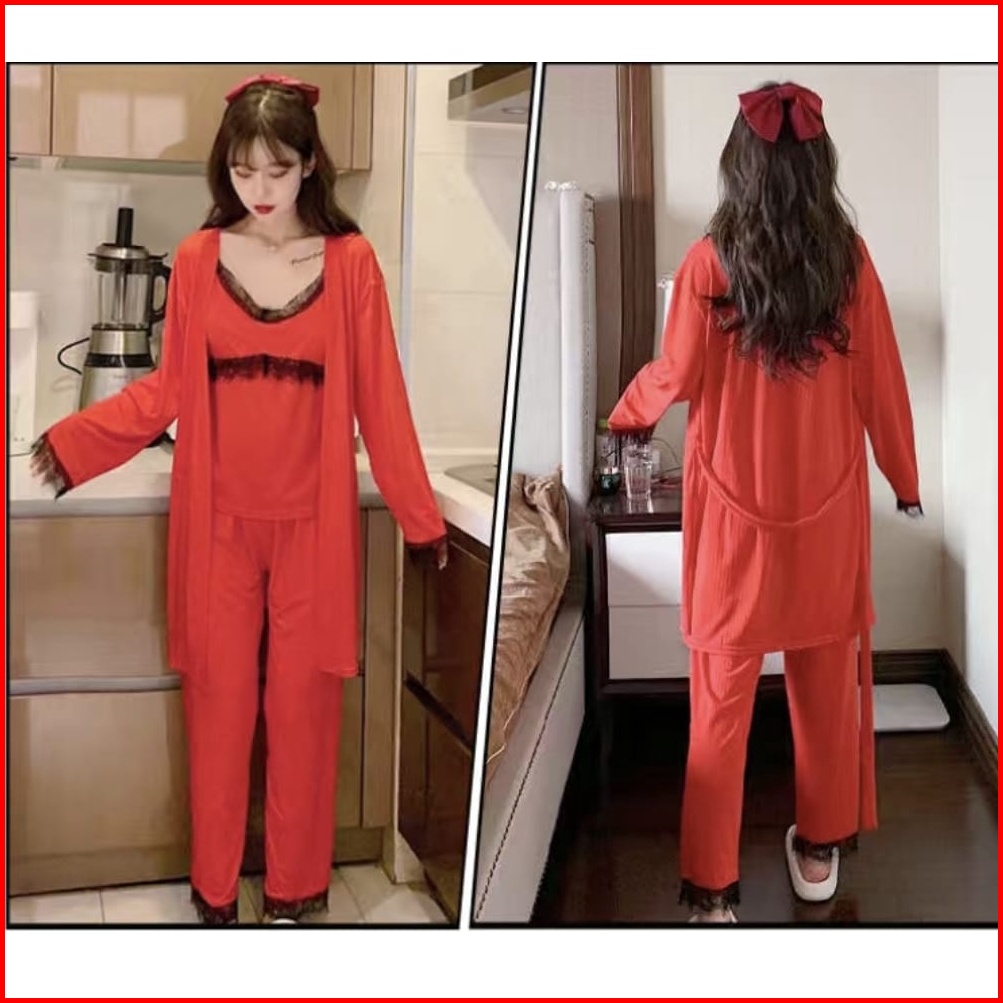 Setelan Pp Piyama Kimono Bahan Satin Silk 3in1