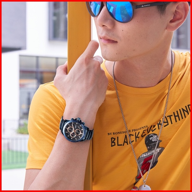 Eyki Jam Tangan Sprots Pria Stainless Steel E3123l-cz4ywh Tali Rantai Steel