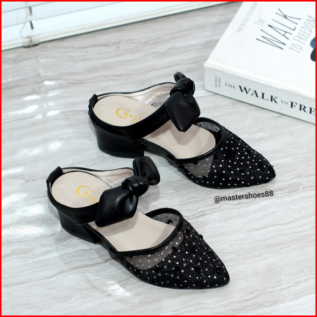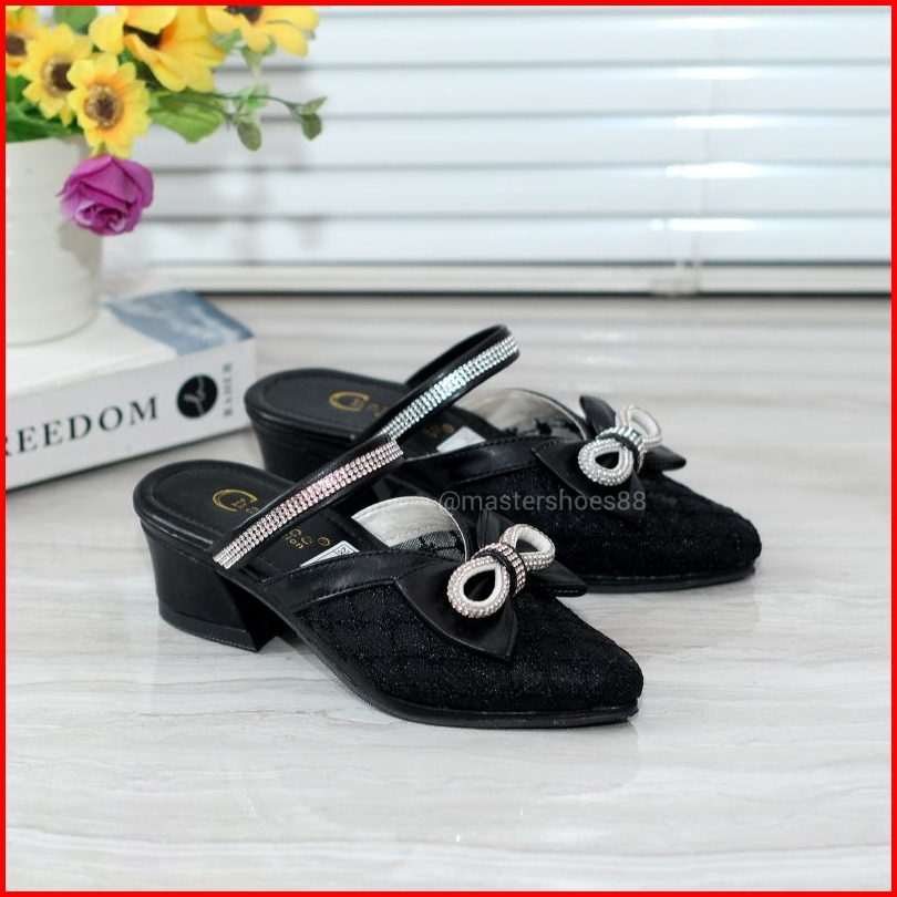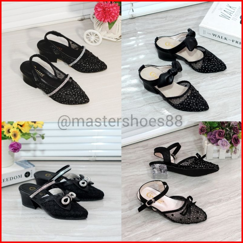 Master Ht01 - Black Collection Best Seller Sandal Selop Pesta Anak Perempuan Jala Hak 3cm