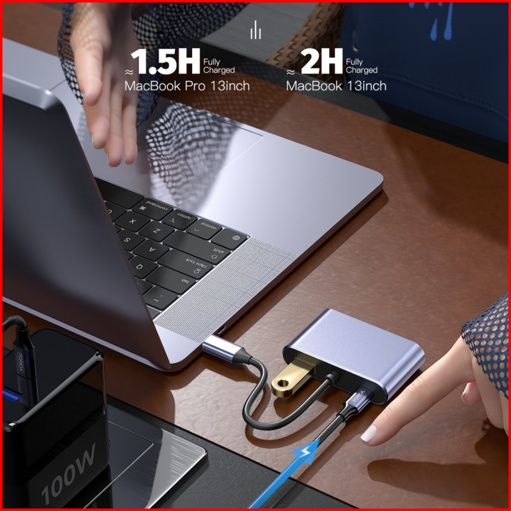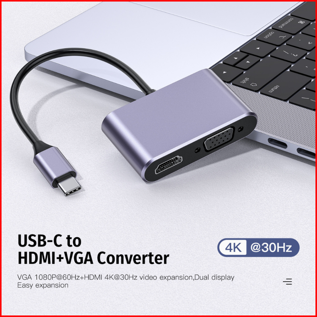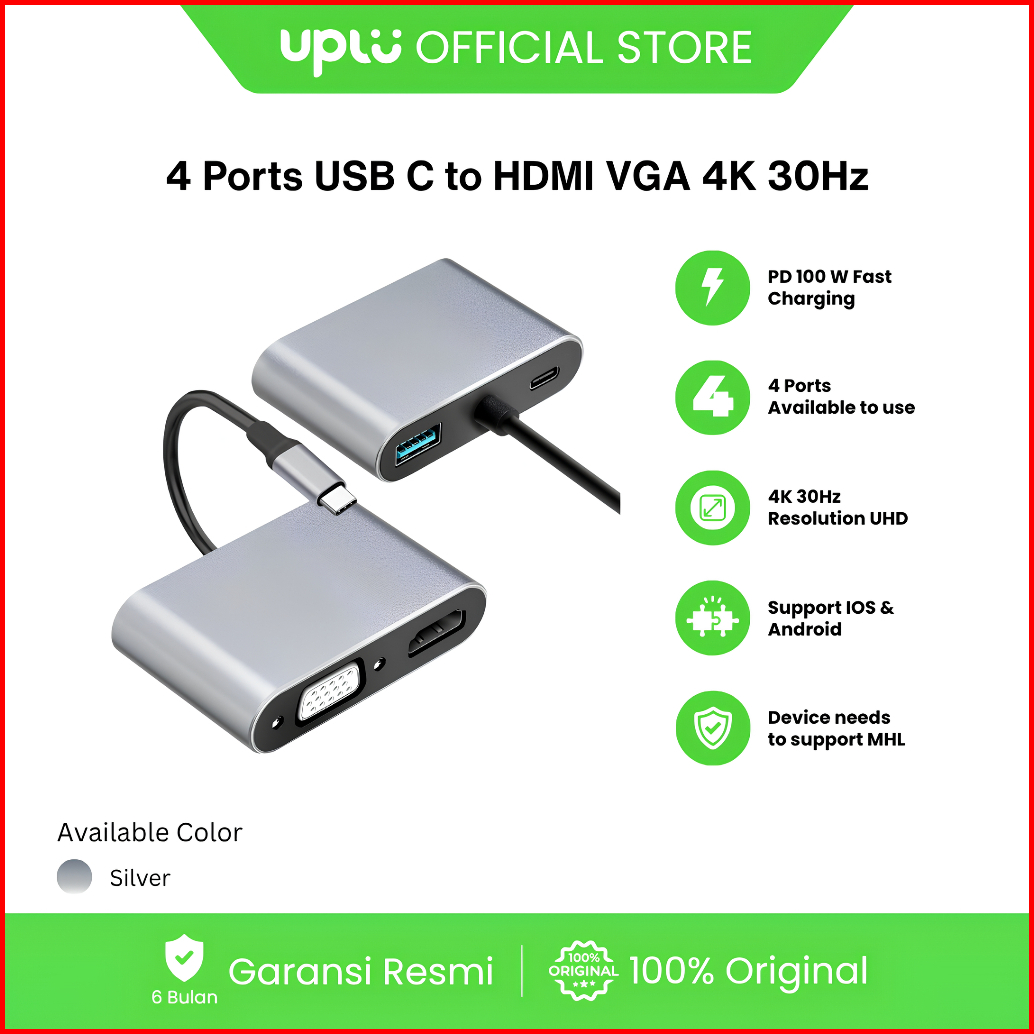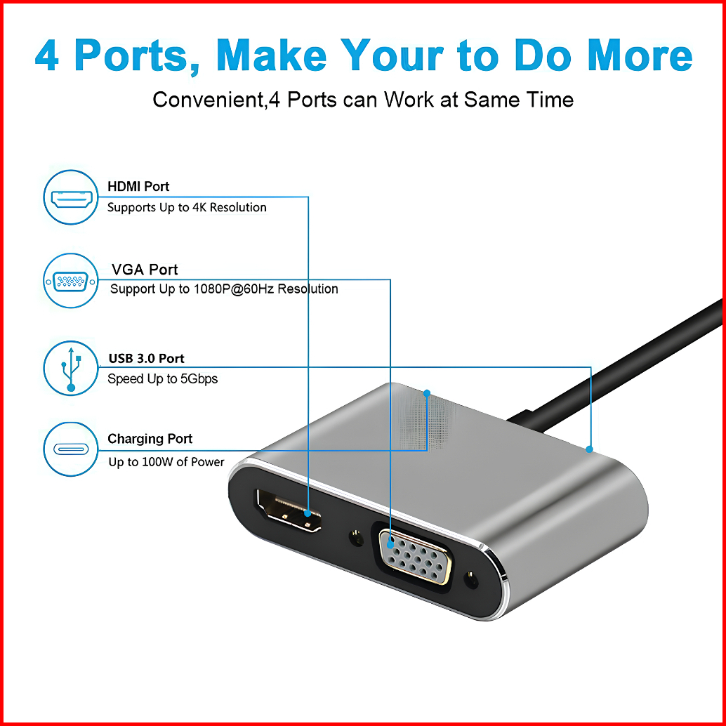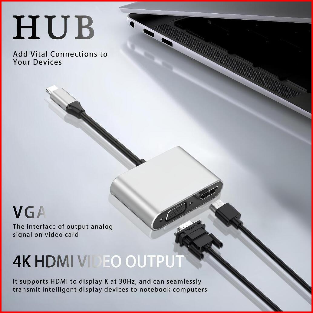 Uplu 4 In 1 Usb Hub Type C To Hdmi Vga 4k 30hz High Speed Data Transmission Pd 100w Fast Charging