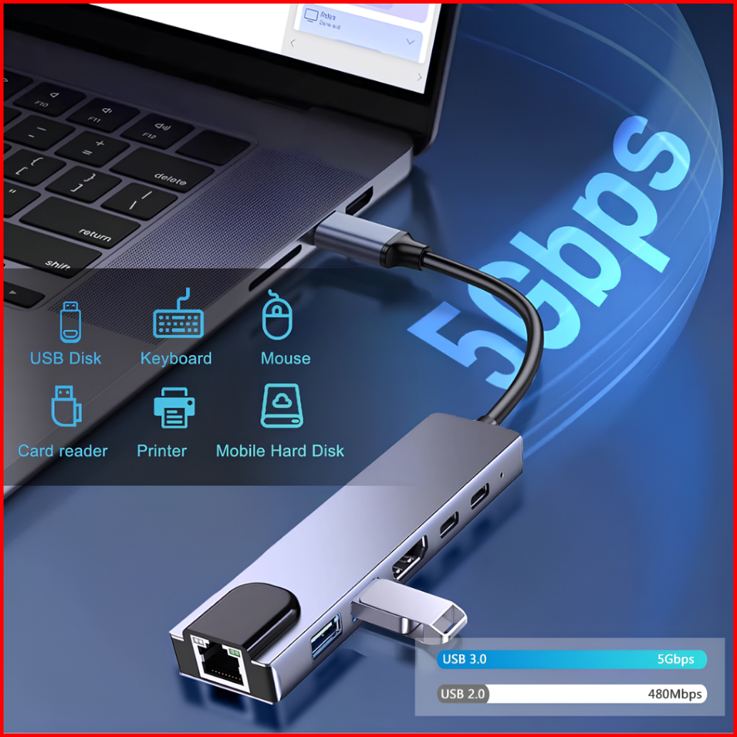 Uplu 6-in-1 Adapter Usb Type-c To Hdmi 4k Uhd Compatible Rj45 Hdd Eksternal Pd100w Fast Charging