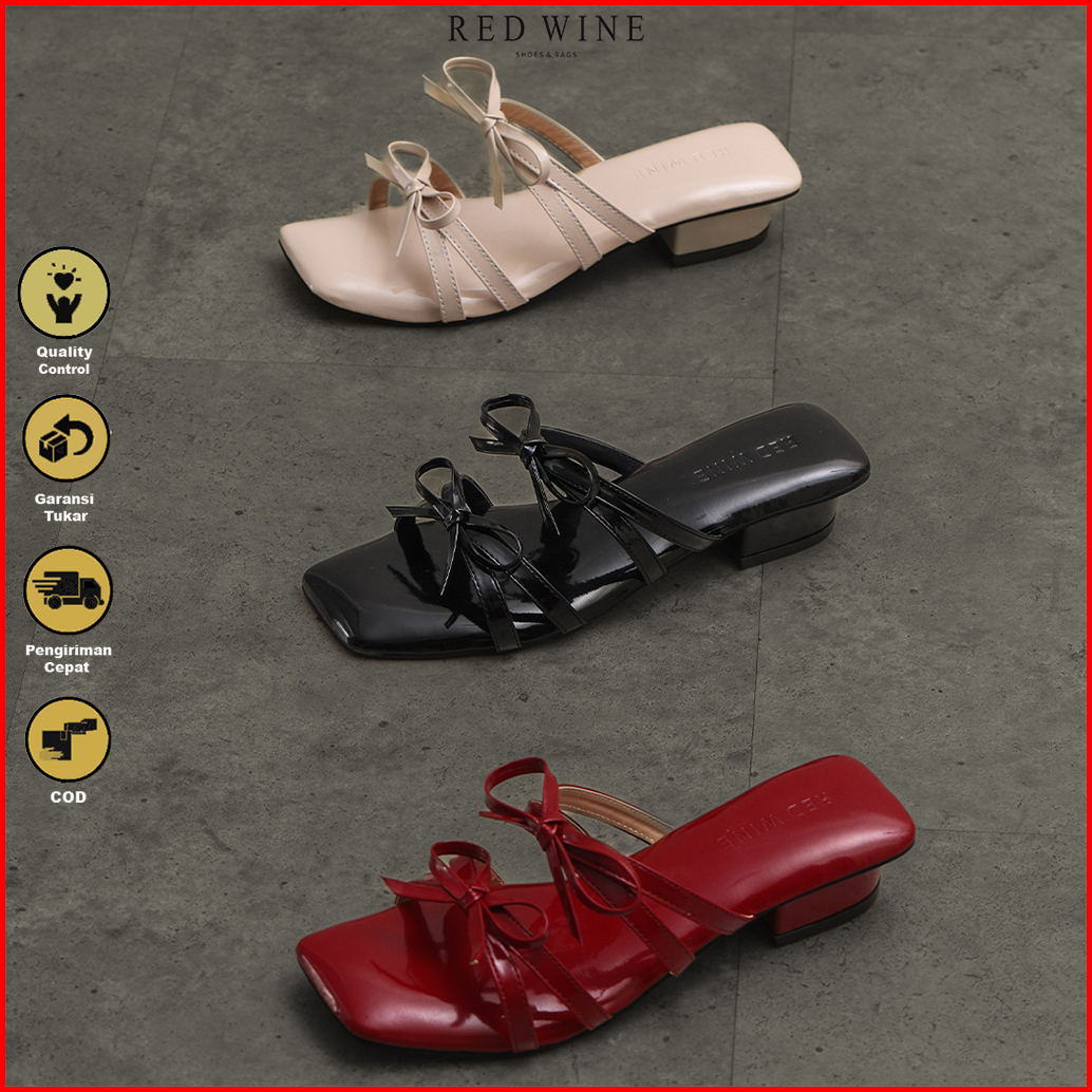 Red Knr020 Avery Bow Sandal Heels Wanita 3cm