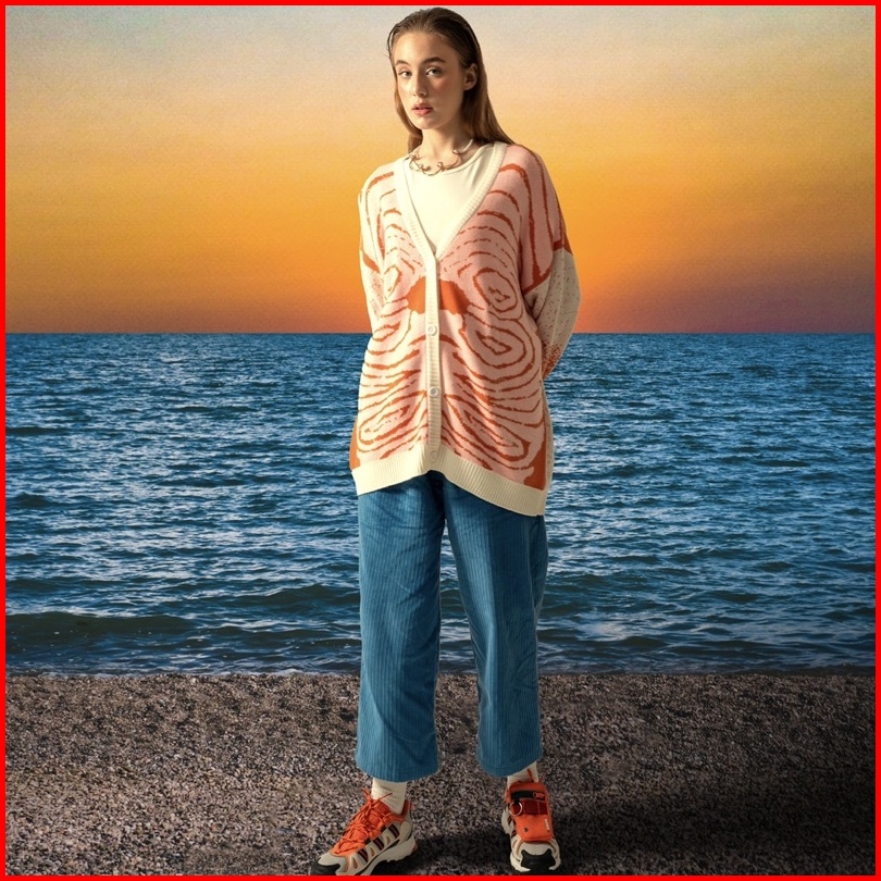 Pattero - Cardigan Knit Wanita Pria Salmon Tendon