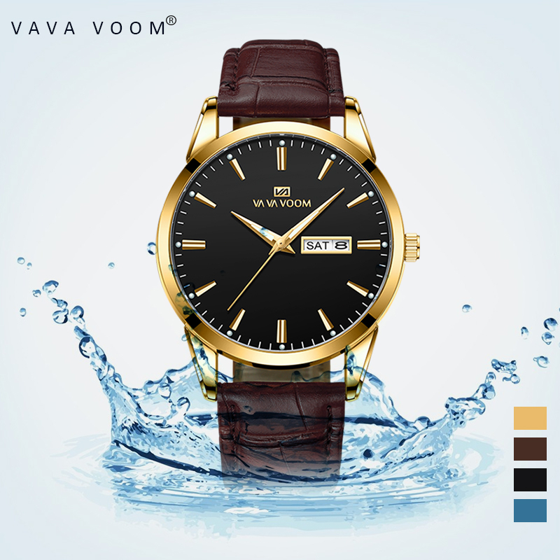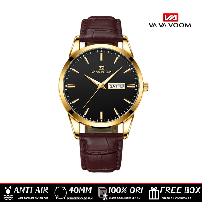 VAVAVOOM JAM TANGAN PRIA ORIGINAL ANTI AIR TAHAN KULIT MEN WATCH HITAM PUTIH BIRU