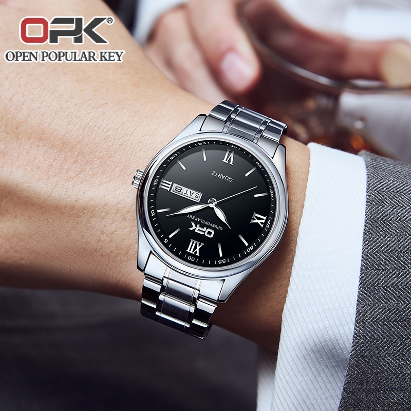 OPK JAM TANGAN PRIA ANTI AIR ORIGINAL STAINLESS STEEL TANGGAL BERCAHAYA KUARSA ANALOG WRIST MEN WATCH MODEL 8123