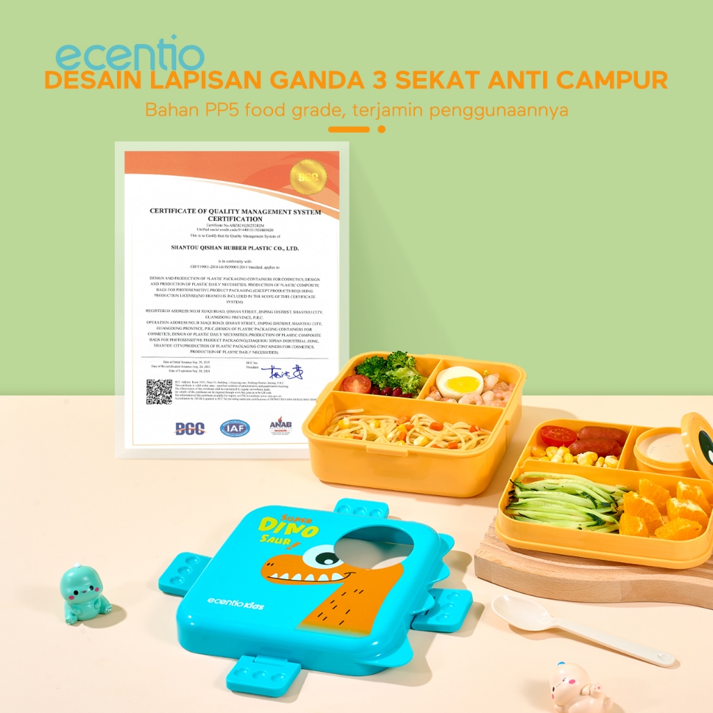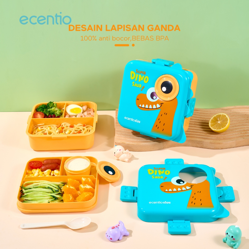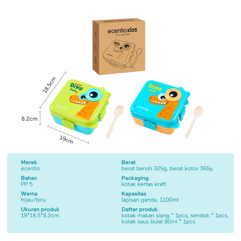 ecentiokids tempat makan anak 2 layer Kotak Makan kartun dinosaurus 1100ML BPA FREE FREE Sendok