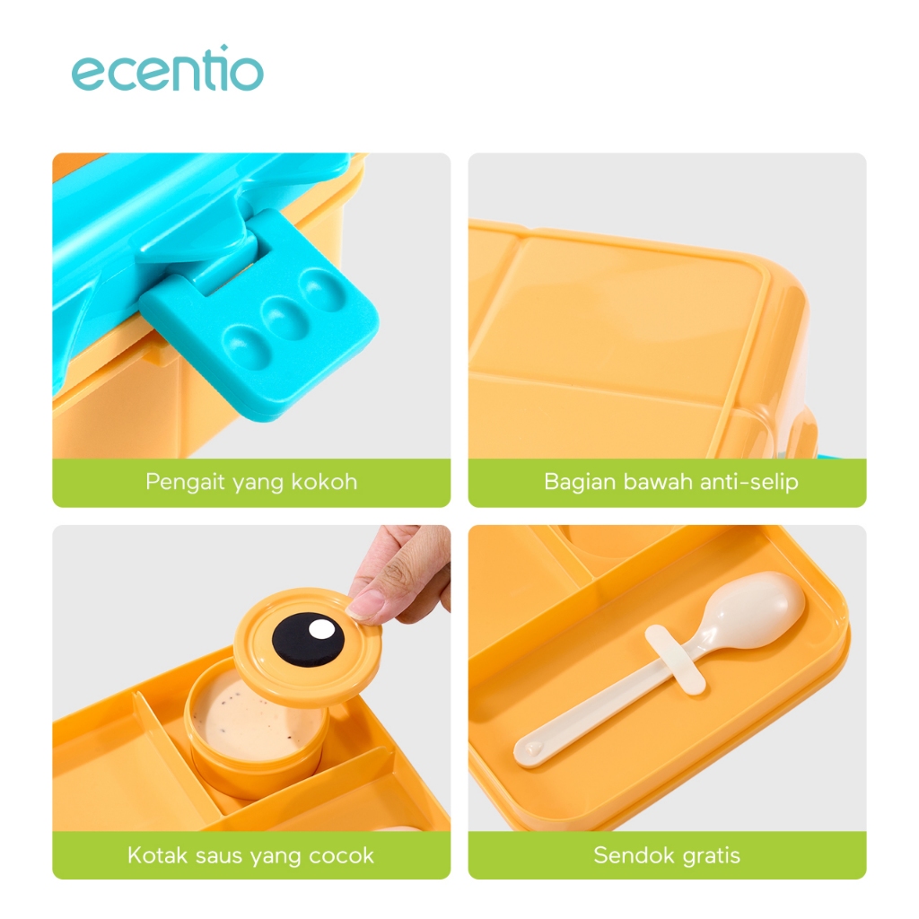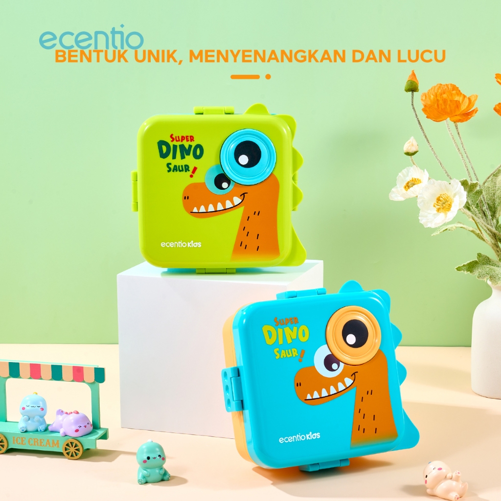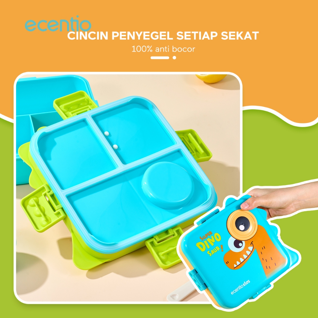 ecentiokids tempat makan anak 2 layer Kotak Makan kartun dinosaurus 1100ML BPA FREE FREE Sendok