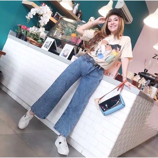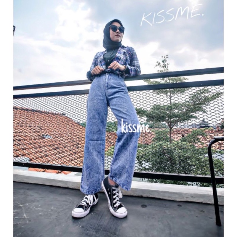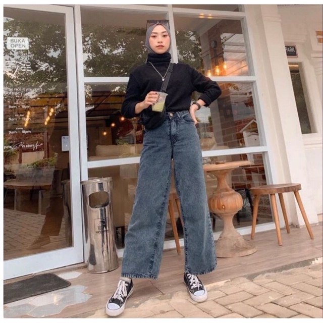 Celana Jeans Wanita Celana Kulot Boyfriend Jins Wanita SNOW BLACK / SNOW BLUE Kekinian
