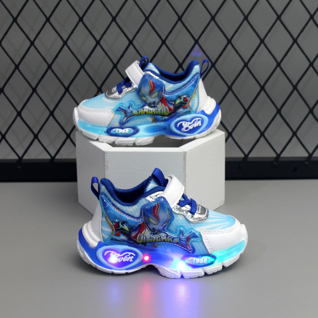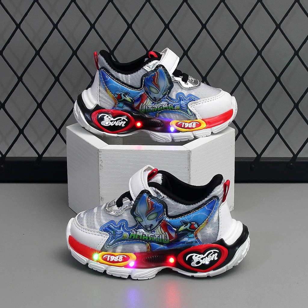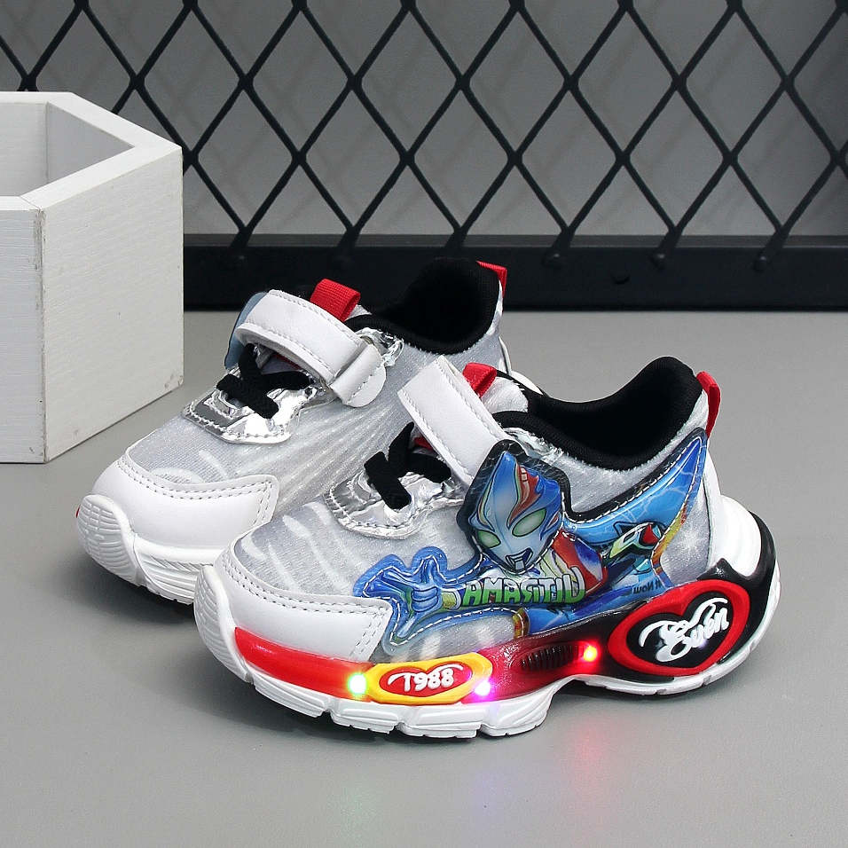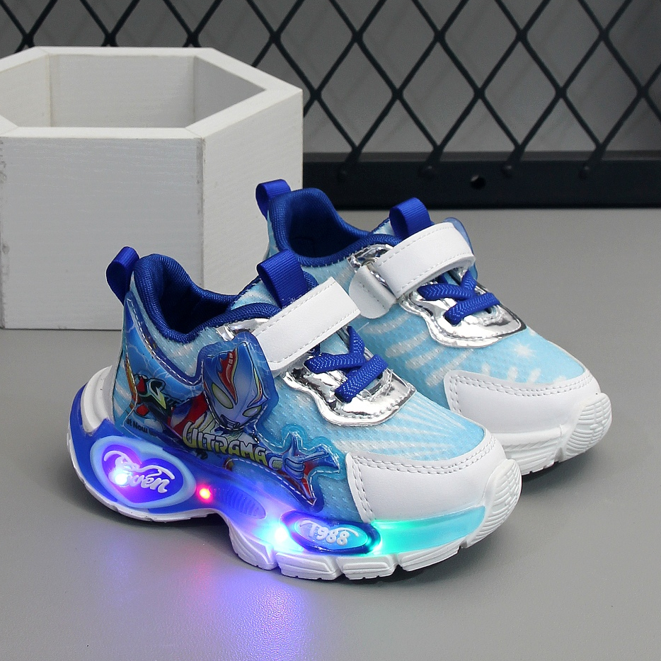 Sepatu Lampu Led Anak Lakilaki Sepatu Ultraman Merah Biru Ukuran 21-30 - FLT112