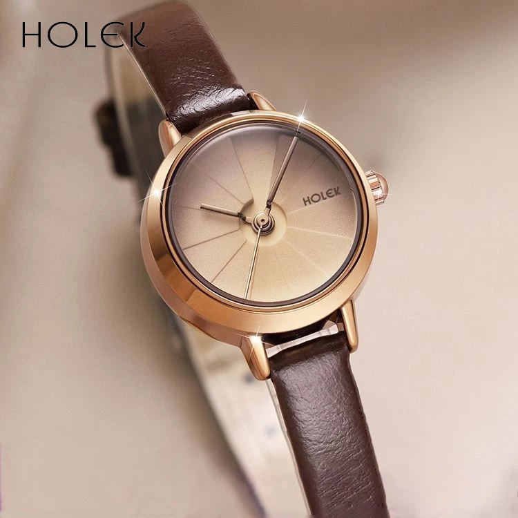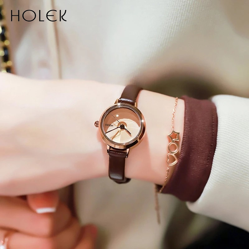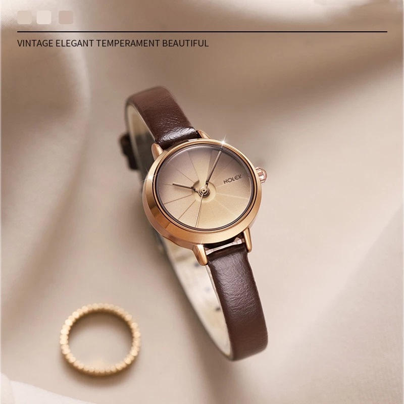 HOLEK 193 JAM TANGAN WANITA TALI KULIT ASLI ASLI JAM TANGAN WANITA RETRO KOREA MINI ELEGAN MODIS TAHAN AIR + KOTAK HADIAH