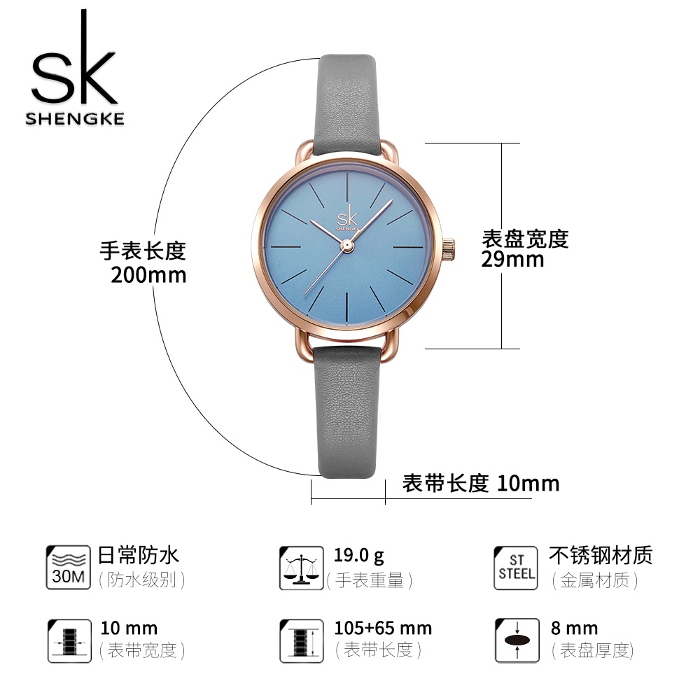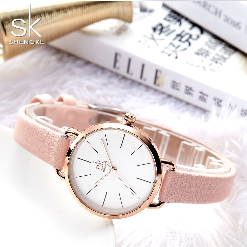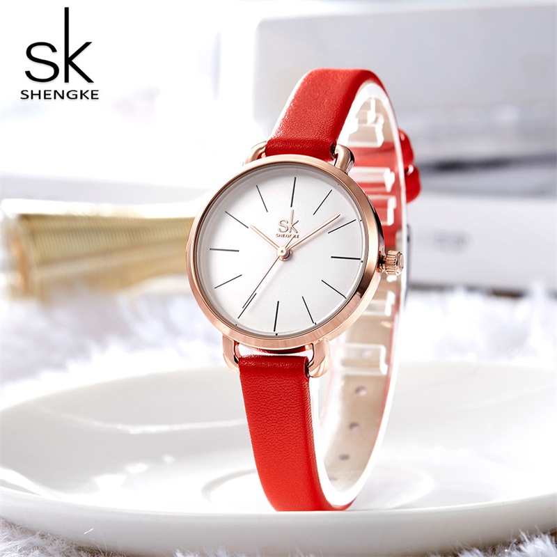 SHENGKE JAM TANGAN WANITA CASUAL LEATHER STRAP QUARTZ MOVEMENT WATER RESIST K8021