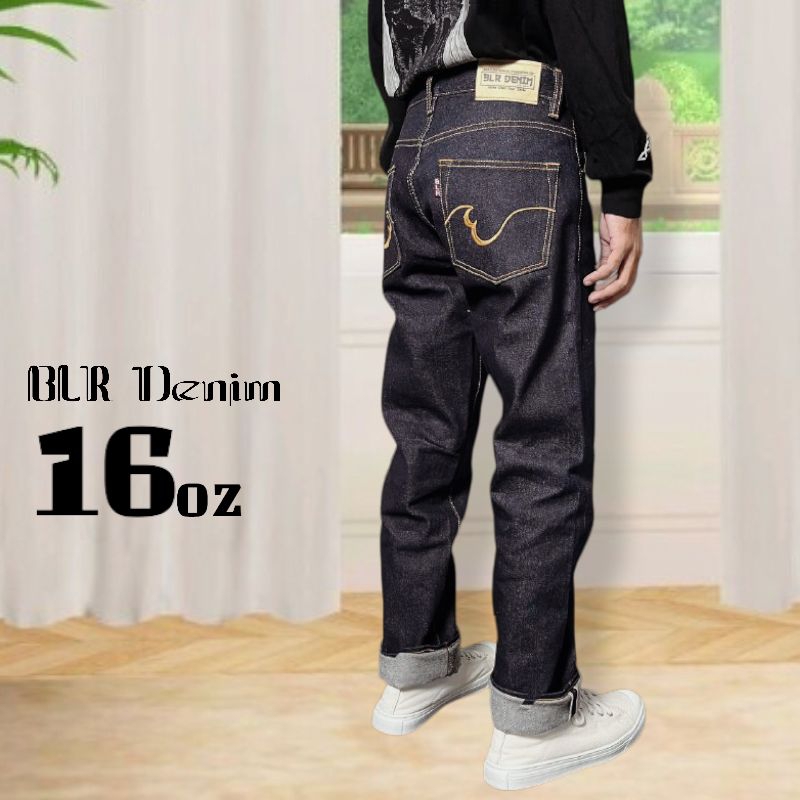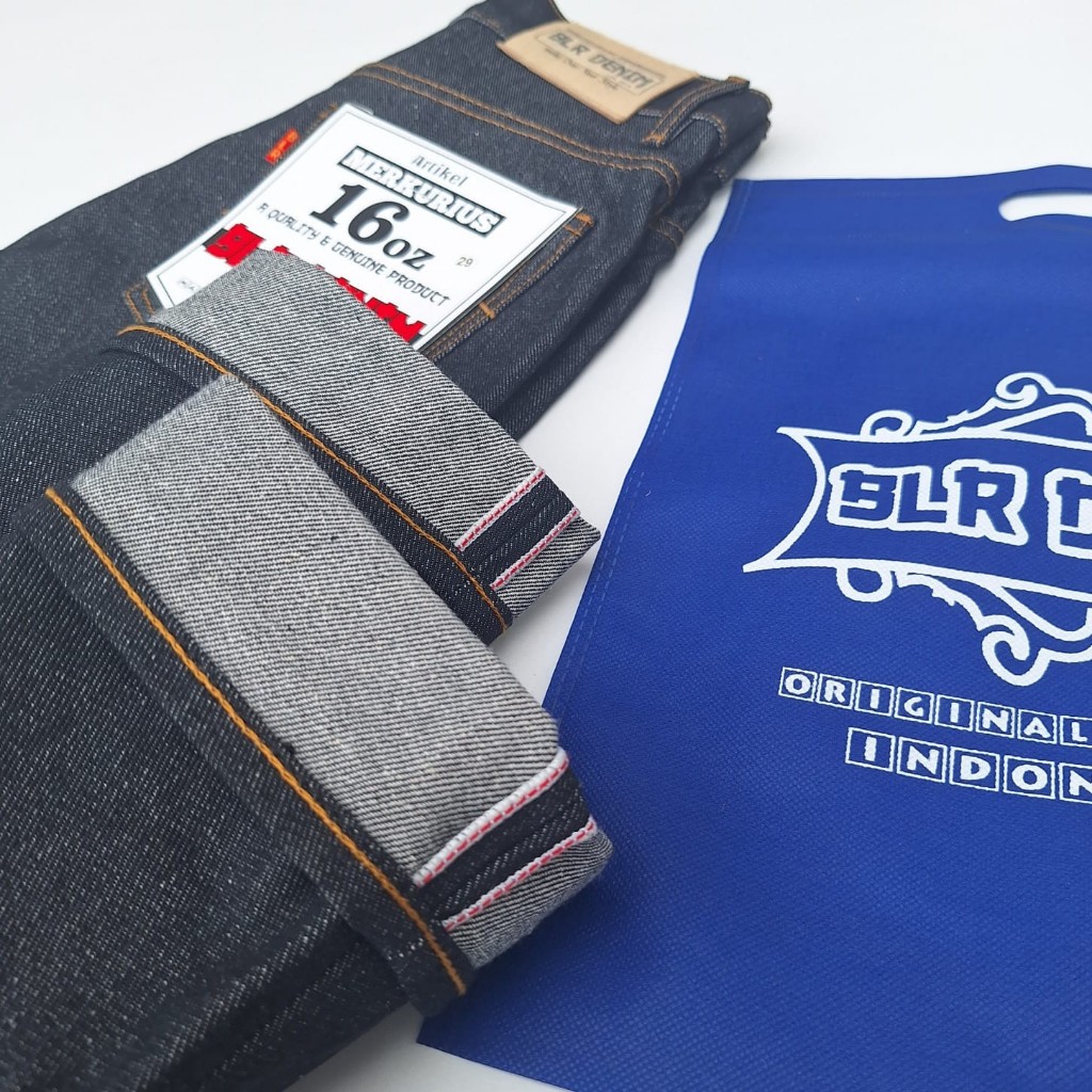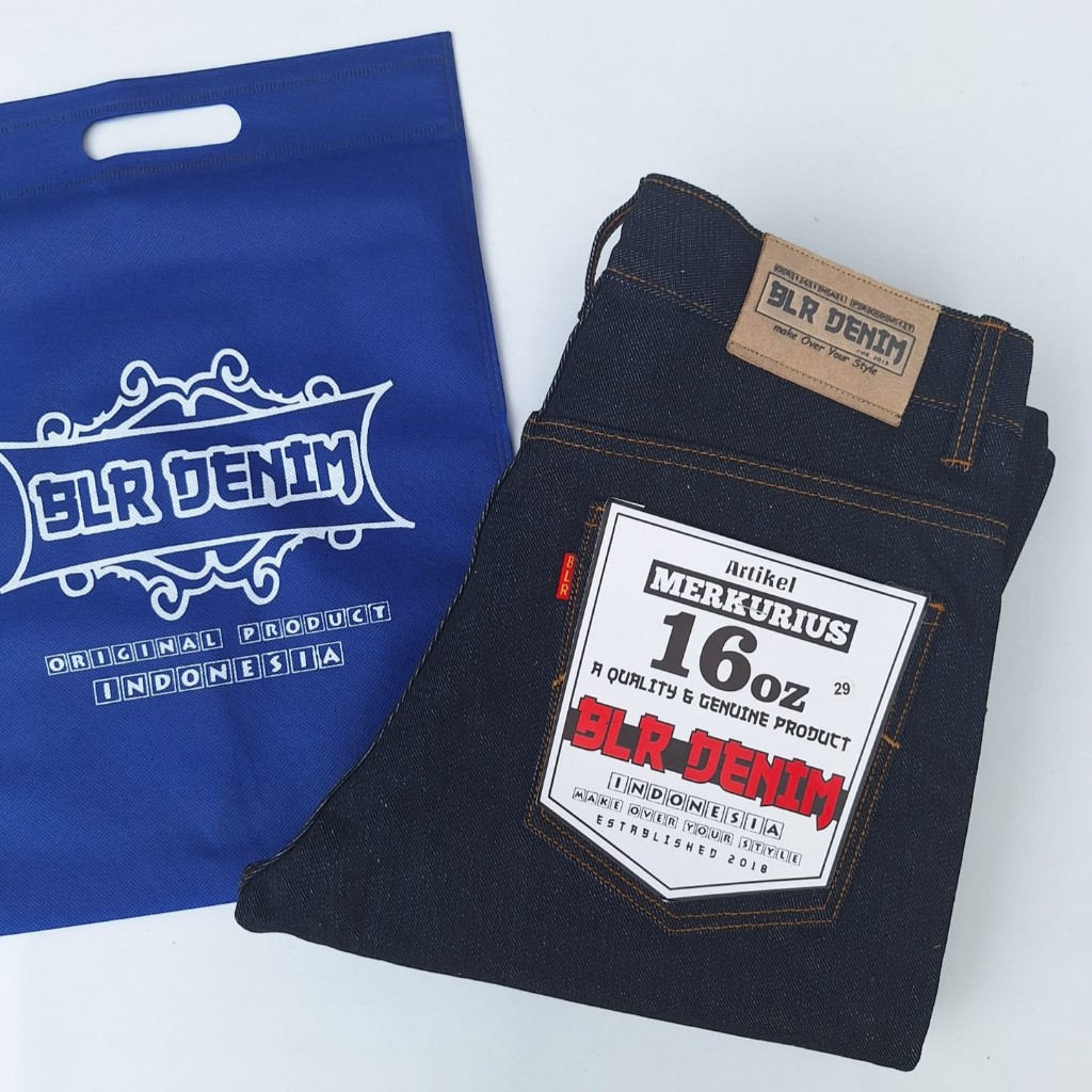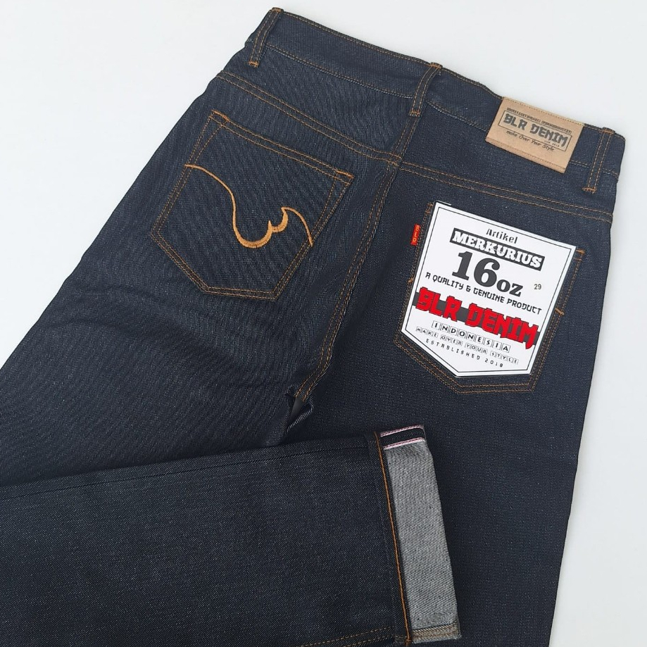 Merkurius Denim 16Oz Celana Jeans Pria Raw Denim Selvedge Accent Redline Blr Denim Black Indigo Asli