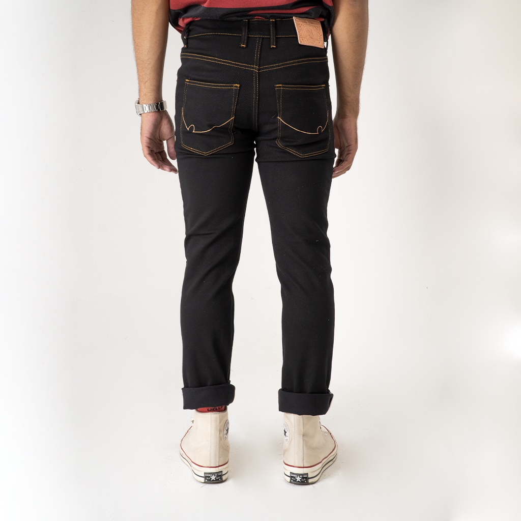 Pure X Black Denim Selvedge Accent - Celana Denim Black Selvedge Accent 13.5Oz Black Denim Strecth