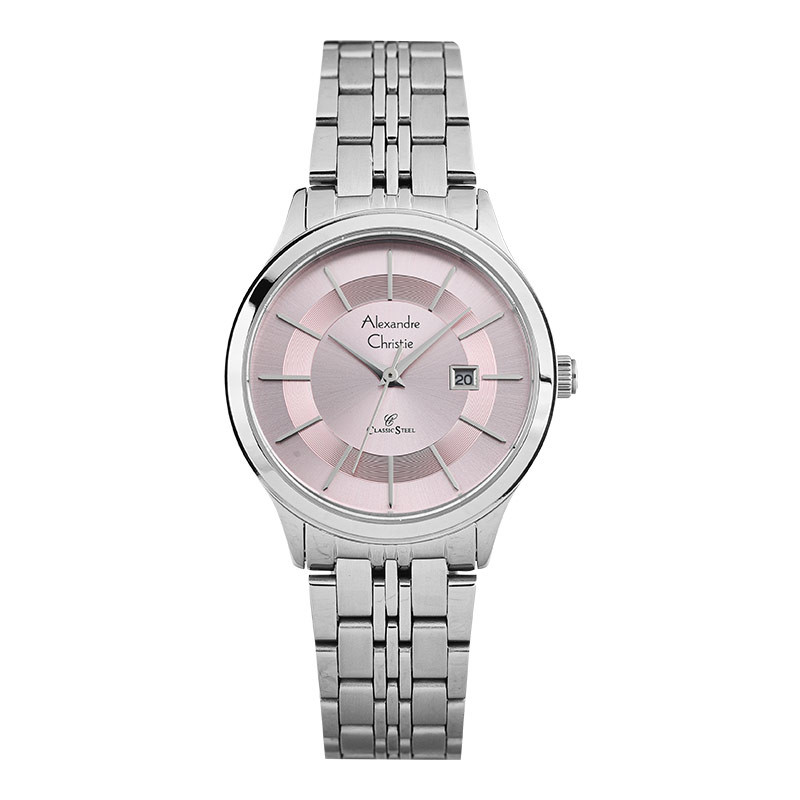 JAM TANGAN WANITA ALEXANDRE CHRISTIE CLASSIC STEEL AC 8348 LD BSSPN LADIES PINK DIAL STAINLESS STEEL STRAP