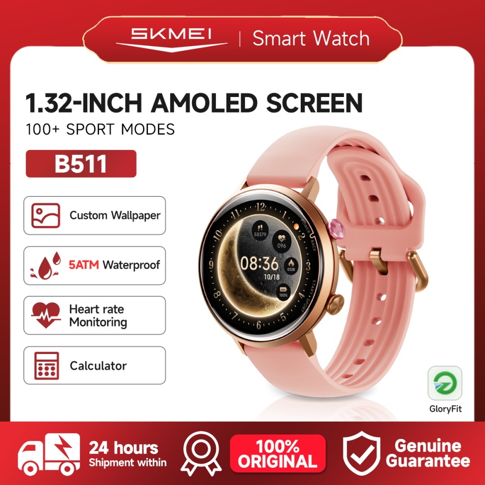 SKMEI B511 SMART WATCH 5ATM WATERPROOF SWIMMING JAM TANGAN WANITA AMOLED SCREEN PANGGIL (JAWAB/PENOLAKAN) JAM OLAHRAGA TRACKER KEBUGARAN DENGAN MONITOR DETAK JANTUNG
