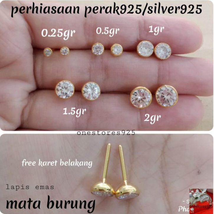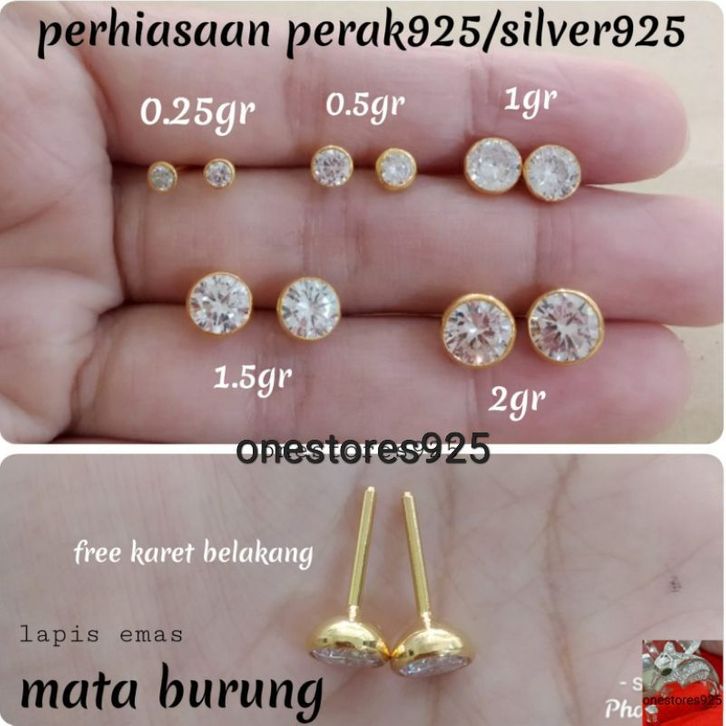 Giwang Mata Burung Kuning Perak 925 Lapis Mas Kuning / anting anak / anting perak dewasa