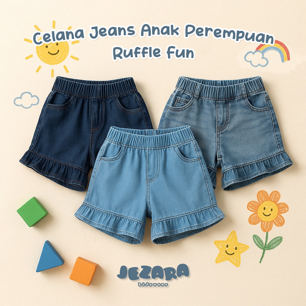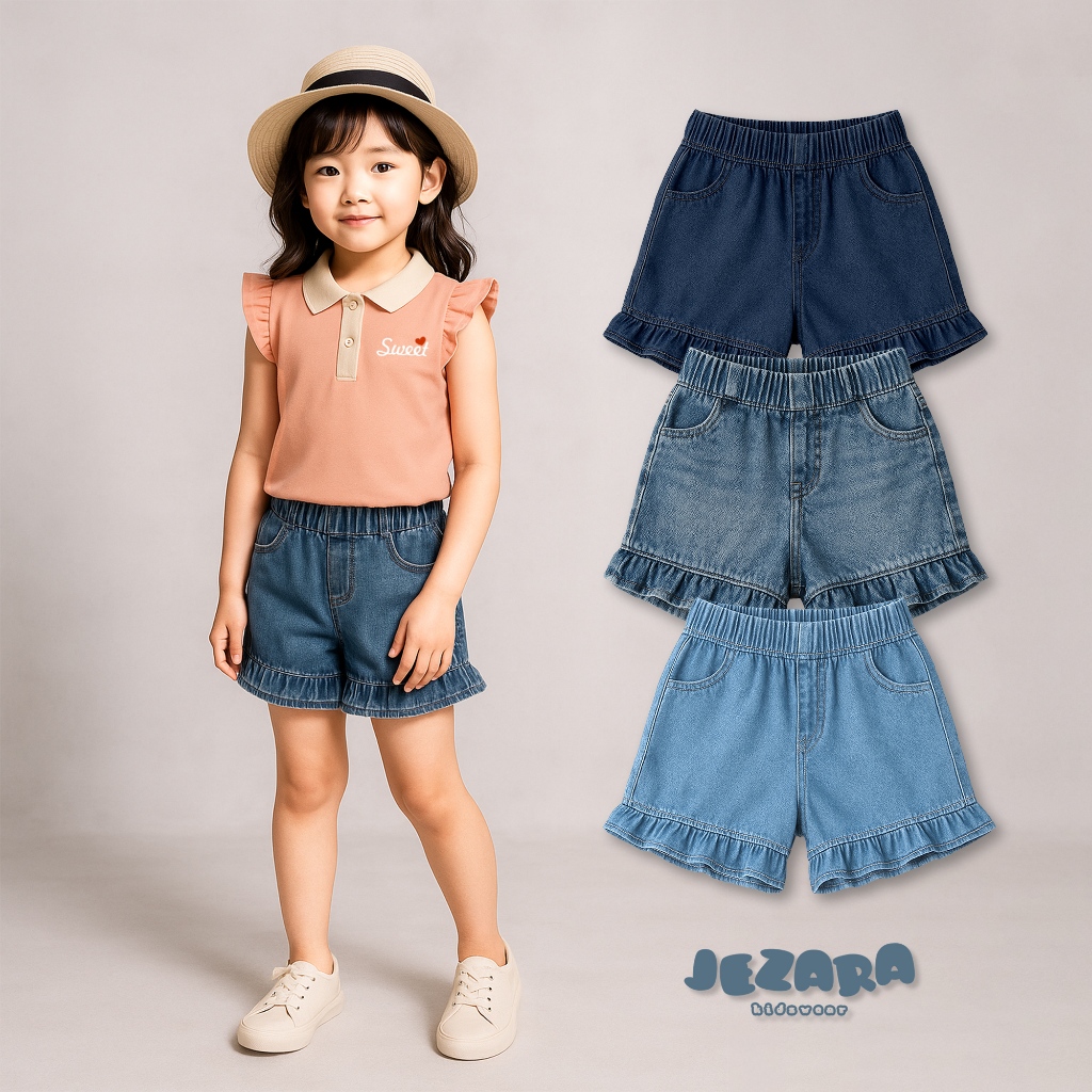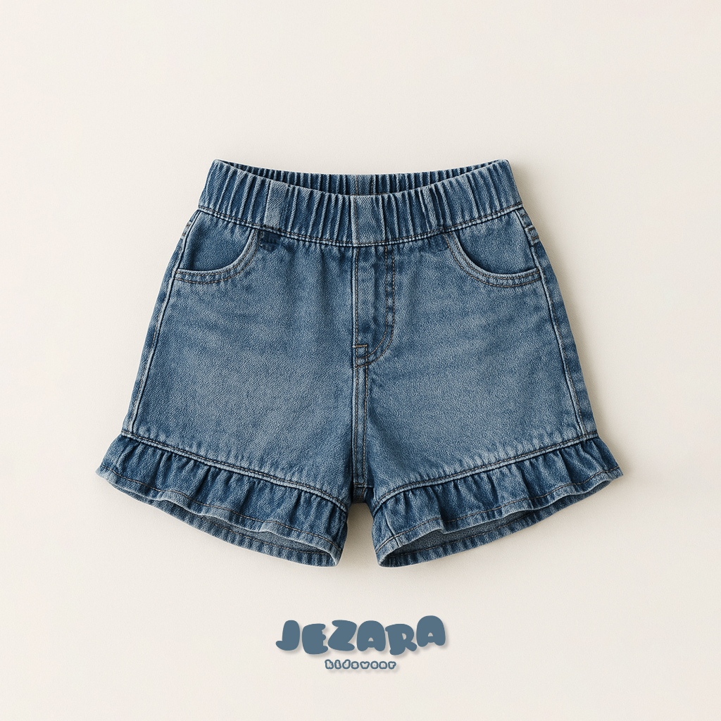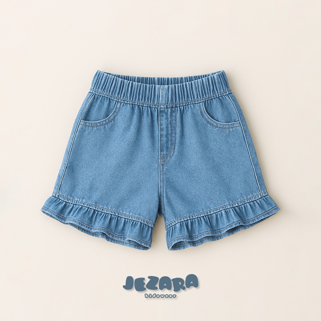 Jezara Celana Jeans Pendek Anak Ruffle Fun Perempuan 1-8 Tahun