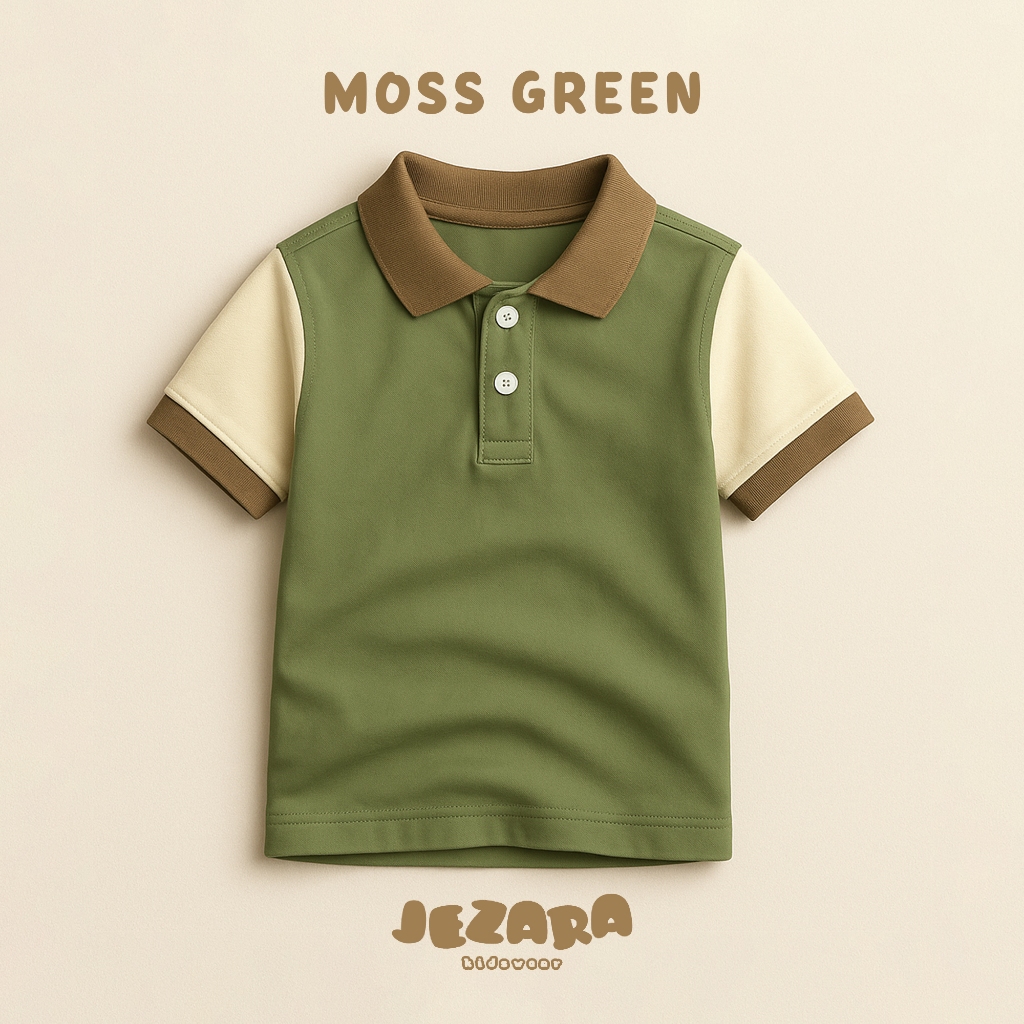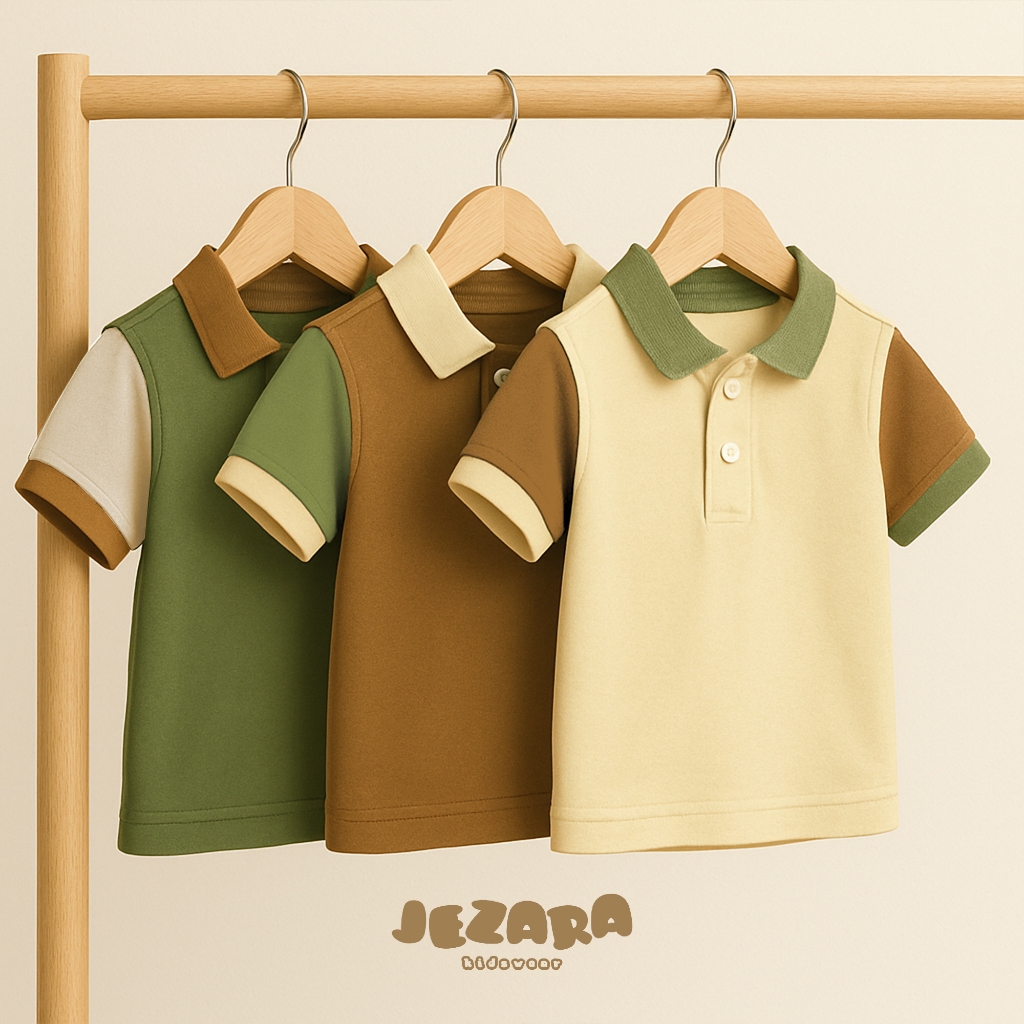 Jezara Baju Polo Anak Kaos Kerah Anak Aston Earthtone Laki-laki Perempuan 1-2 Tahun