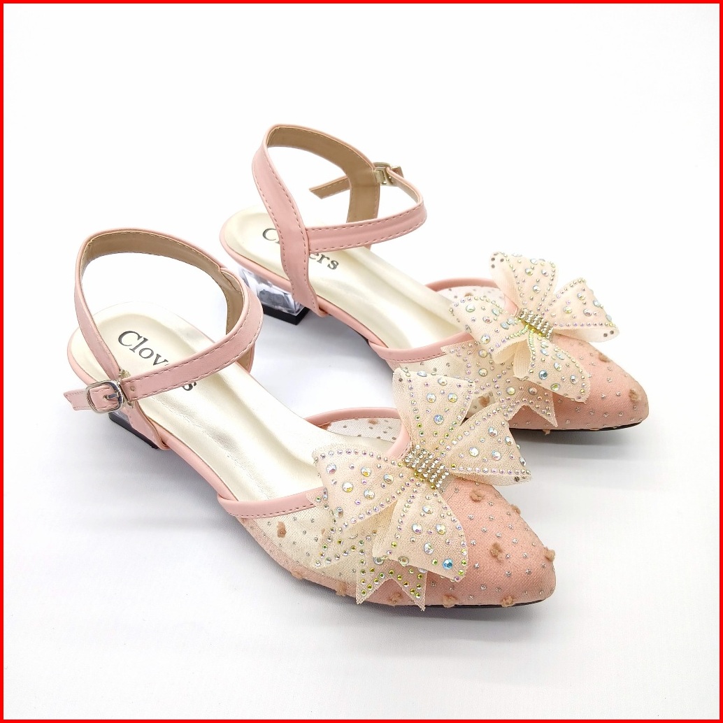 Clovers Store Sandal Anak Perempuan Sandal Brukat Wanita Sandal Pesta Pernikahan Hak Kaca 3 Cm