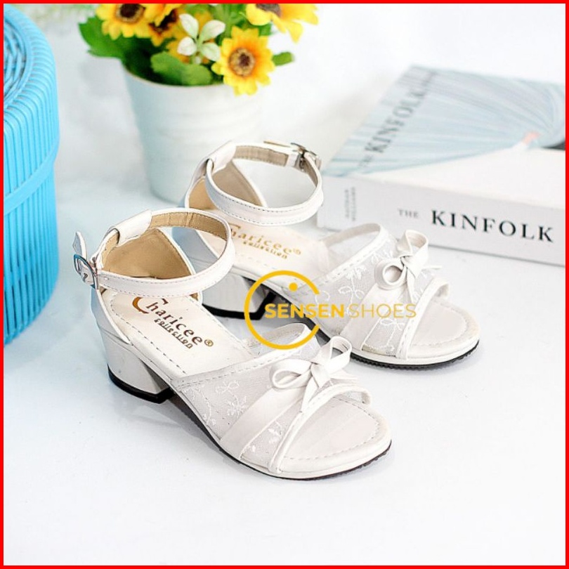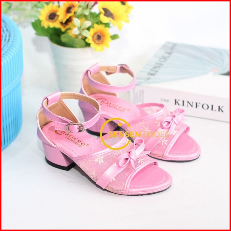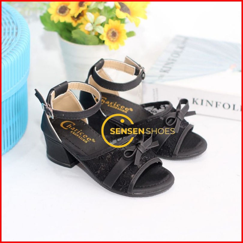 Sepatu Sandal Pesta Anak Perempuan Hak Tahu Brukat Jala Motif Pita