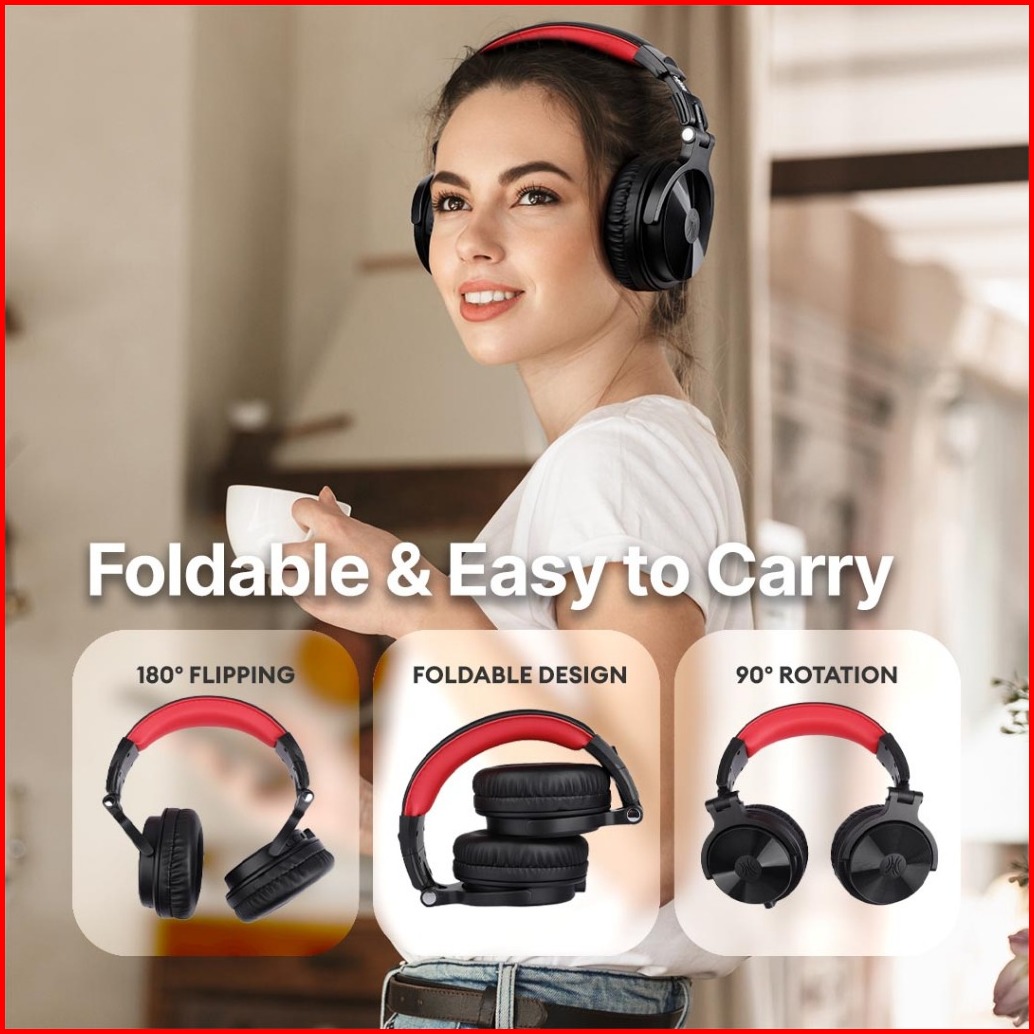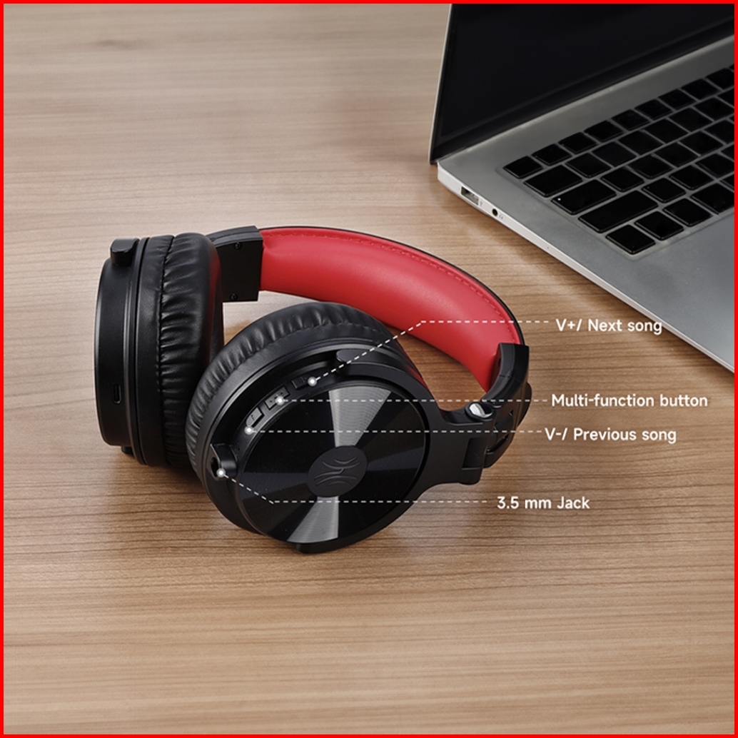 Oneodio Studio Wireless Pro C Bluetooth Headphones - Black Red