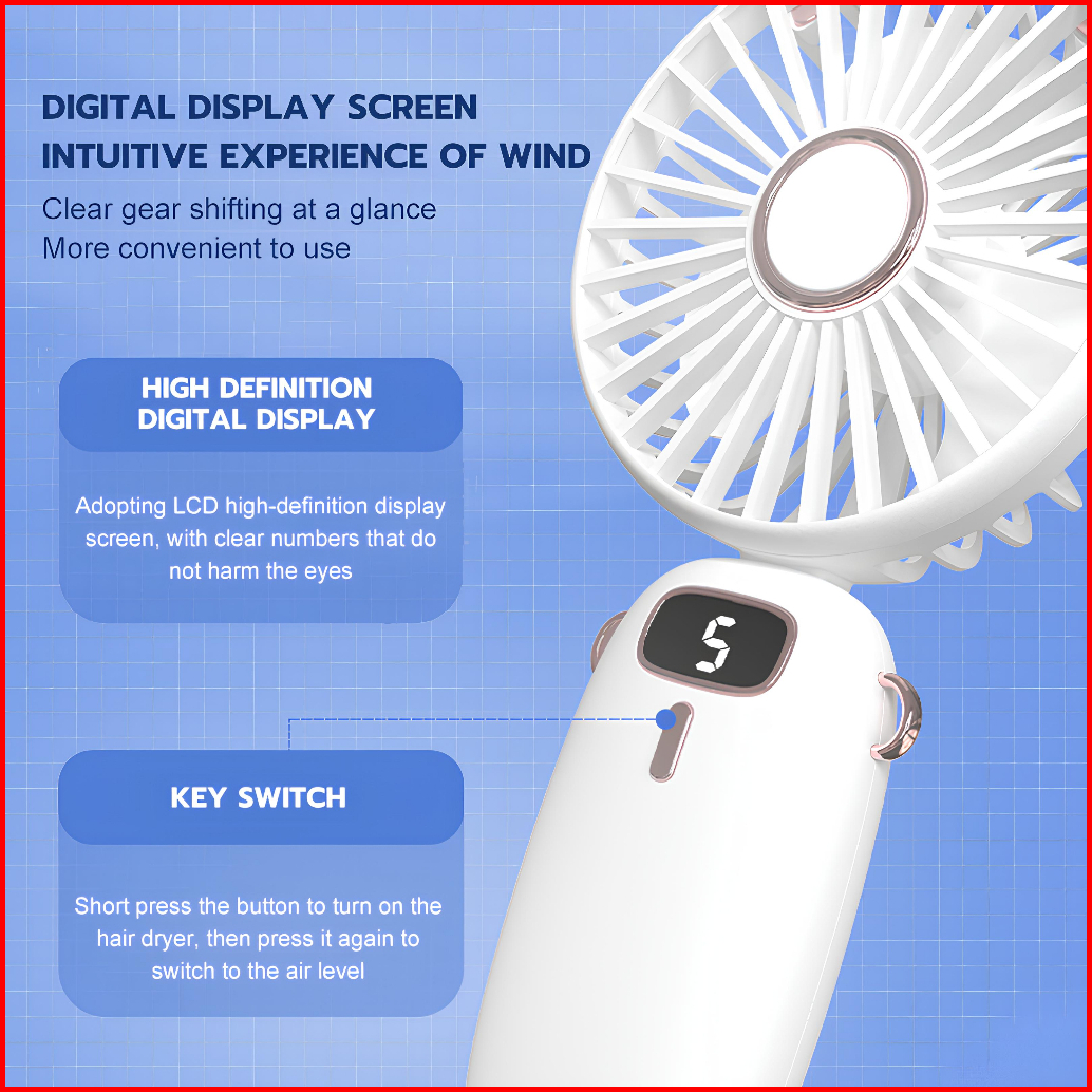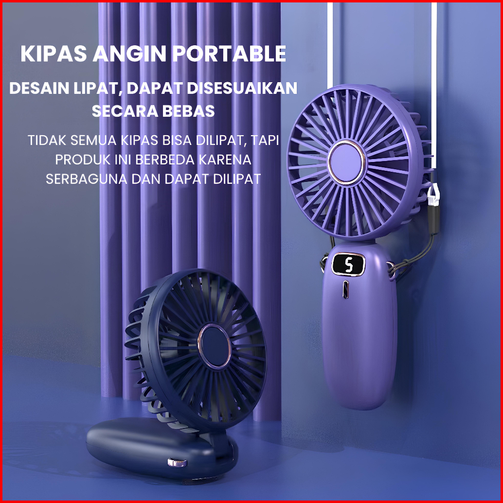 Uplu Kipas Angin Mini Portable Usb 10000mah Leher 5 Speed Adjustment Wind Led Display