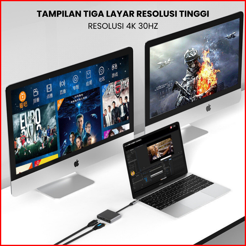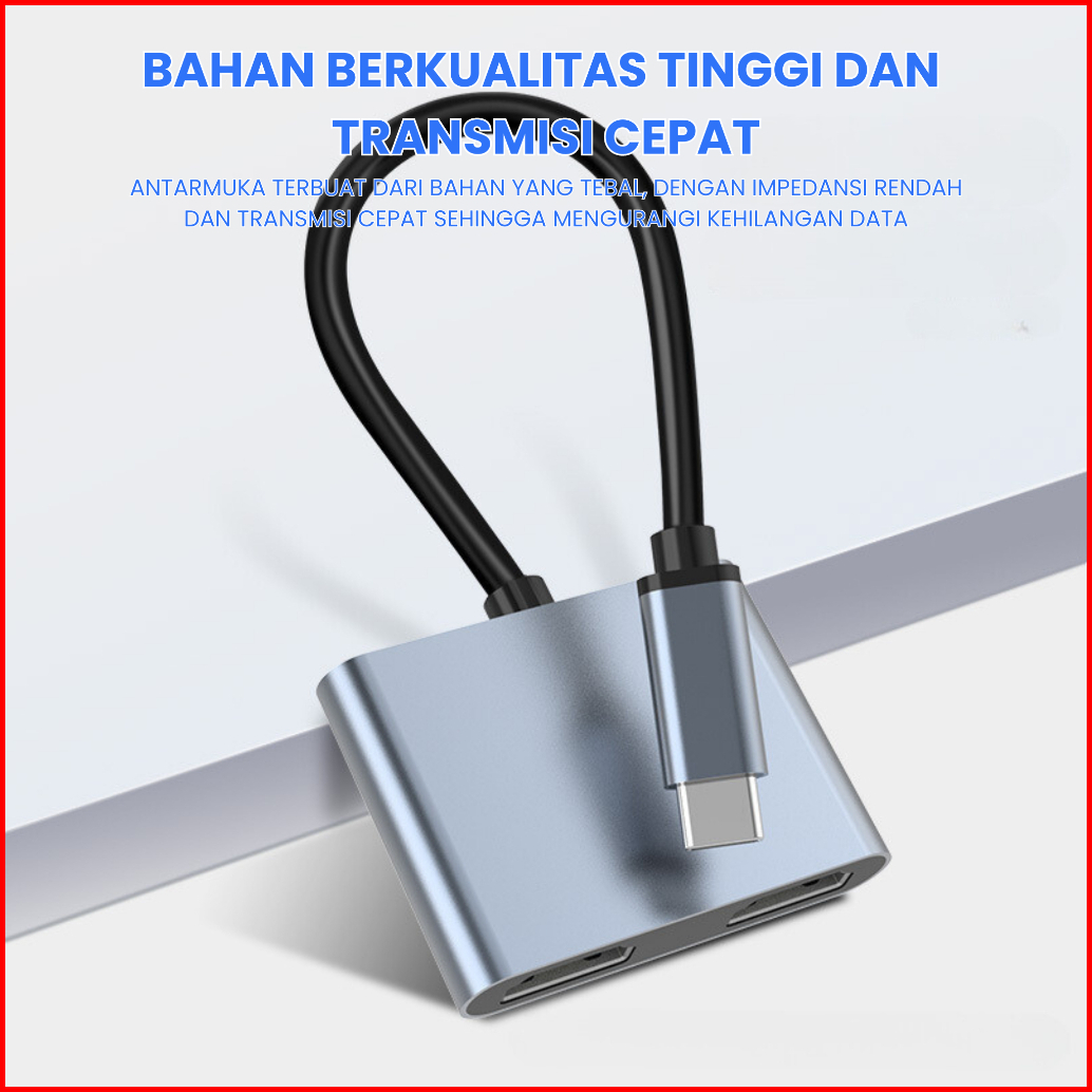Uplu 2 In 1 Hub Adapter Usb Type C To Hdmi 4k 30hz 2 Ports Premium High Quality Original