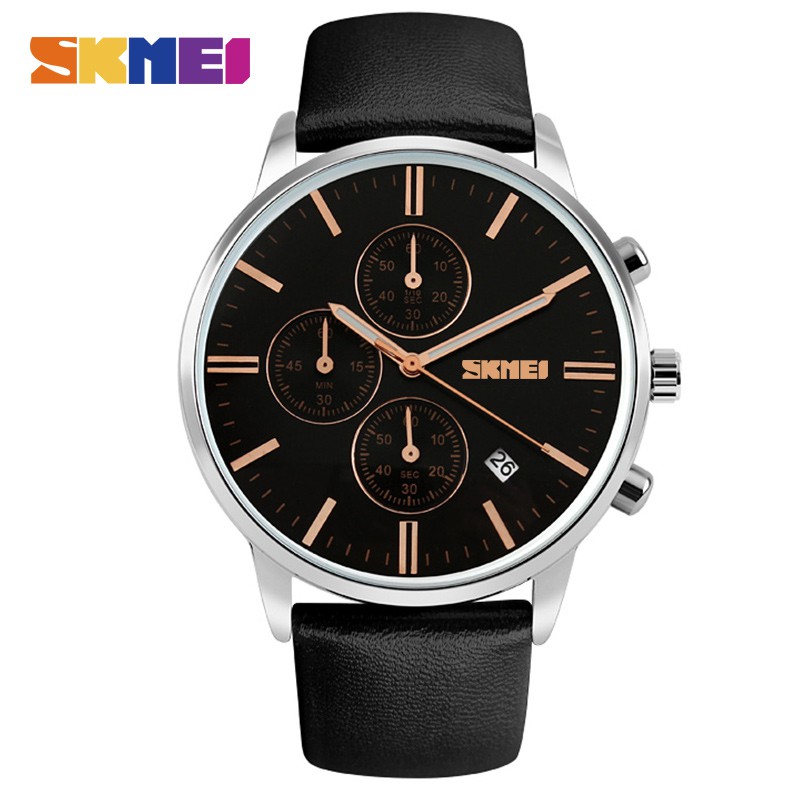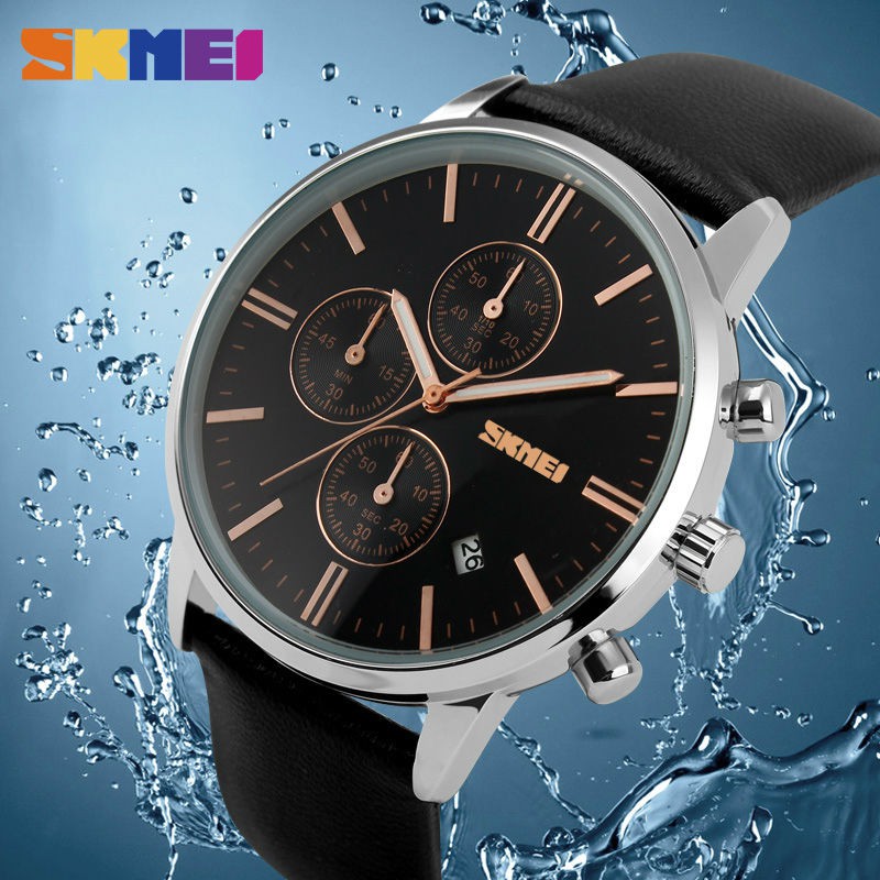 SKMEI 9103 JAM TANGAN PRIA ANALOG CHRONOGRAPH TALI KULIT MGOS