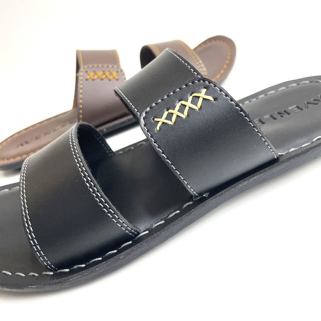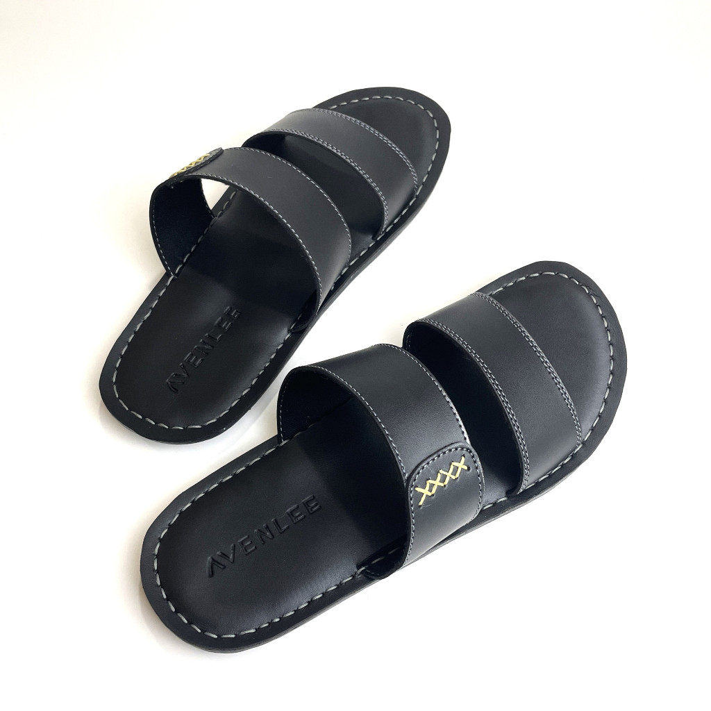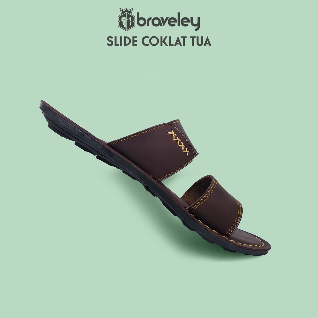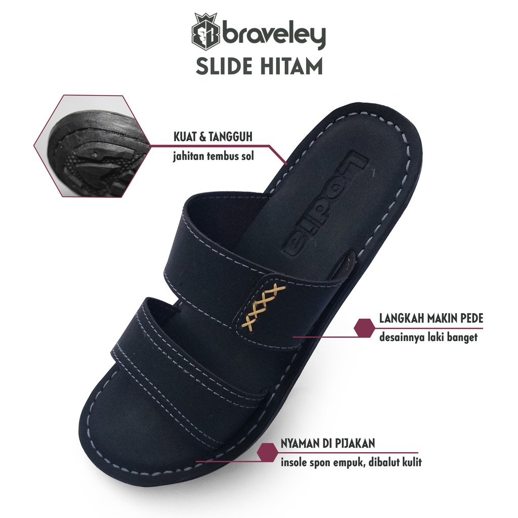 SANDAL PRIA SLIDE KULIT PU WARNA HITAM BRAVELEY