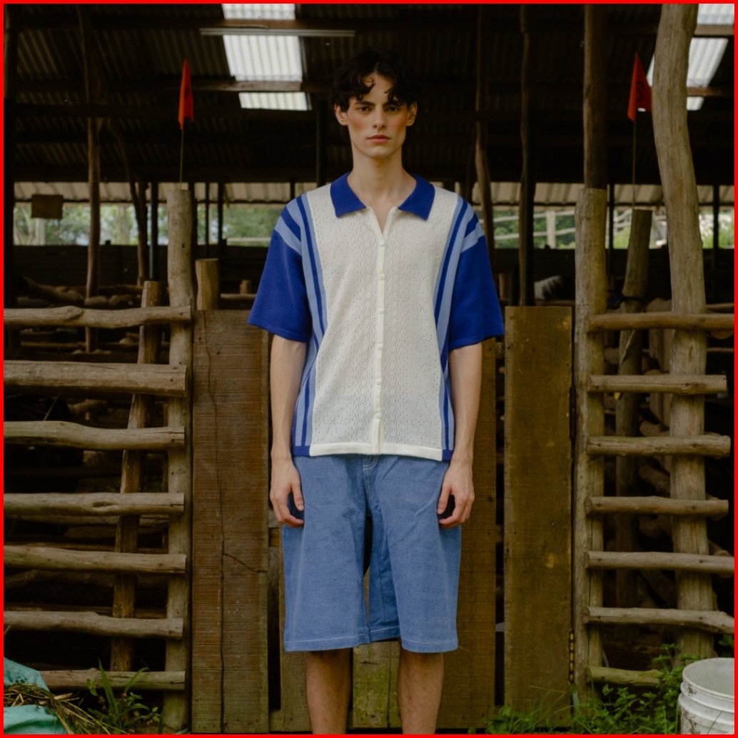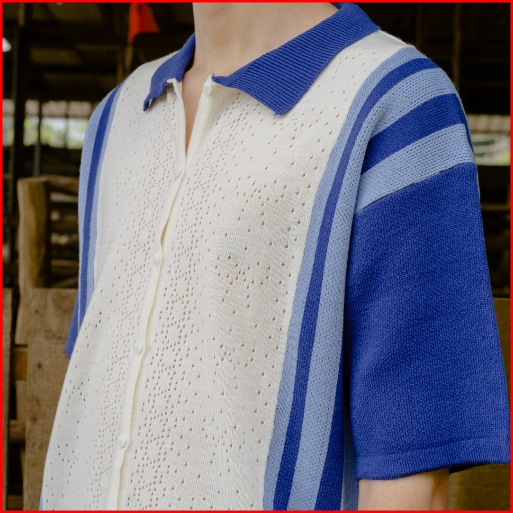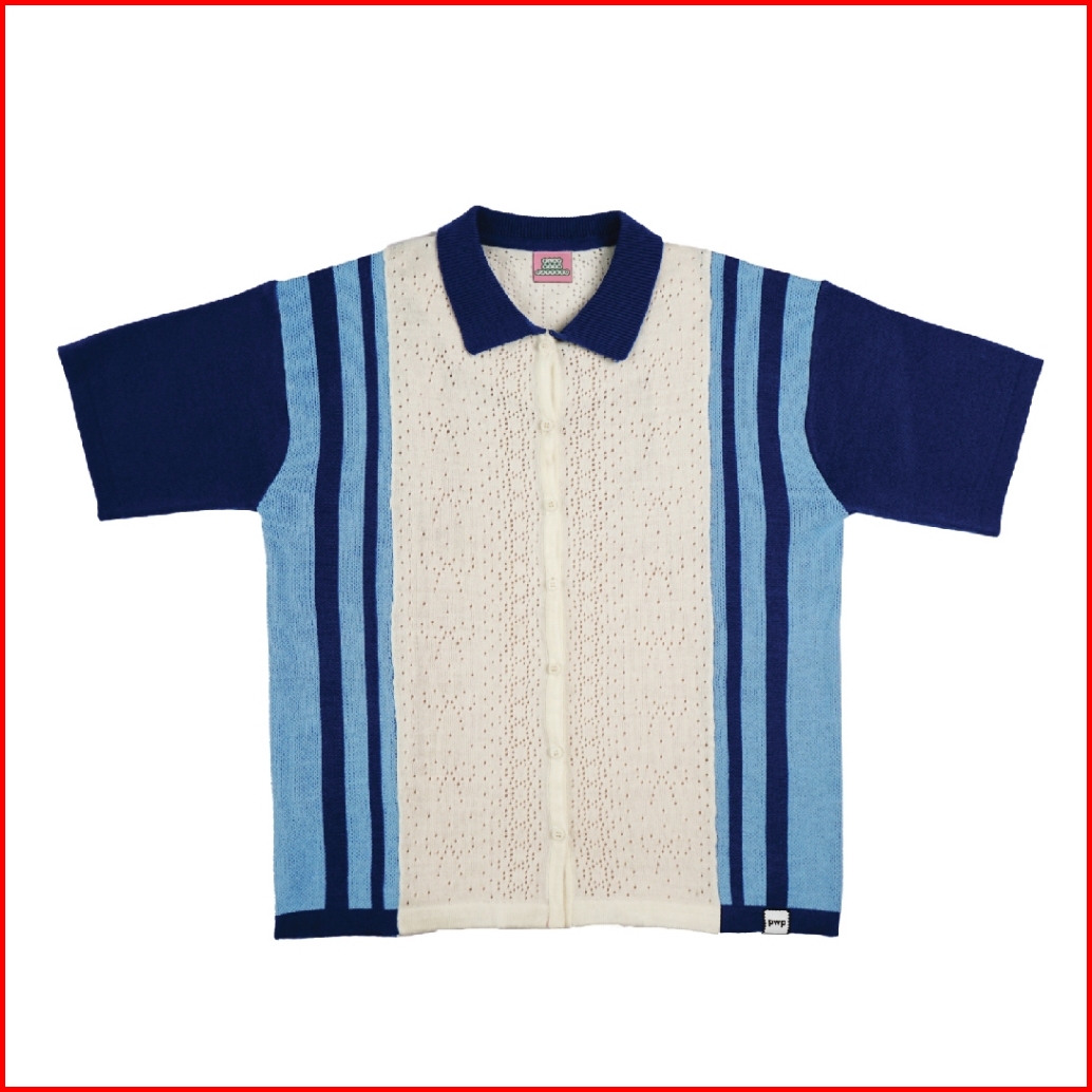 Pattero - Kemeja Knit Wanita Pria Meadow Bloom Crochet - Blue